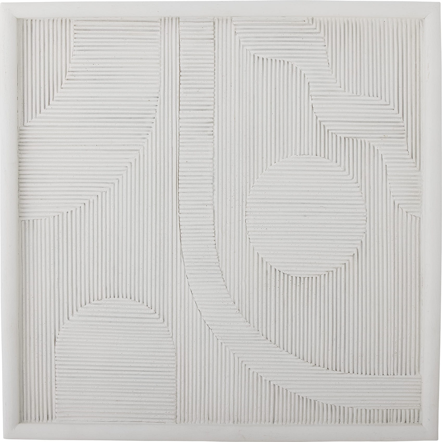 Dekoracja ścienna Patina firmy Bloomingville. Wykonano ją z żelaza i żywicy. Na jej monochromatycznej powierzchni wyróżnia się teksturowany geometryczny wzór. Dekoracja jest biała i ozdobiona graficznym wzorem, który dodaje domu artystycznego wymiaru. Połącz i dopasuj dekorację ścienną Patina do innych dekoracji ściennych w spokojnych odcieniach, aby stworzyć harmonijną i zachęcającą atmosferę. Można ja powiesić na ścianie albo ustawić na półce lub komodzie, w towarzystwie roślin i innych dekoracji.
