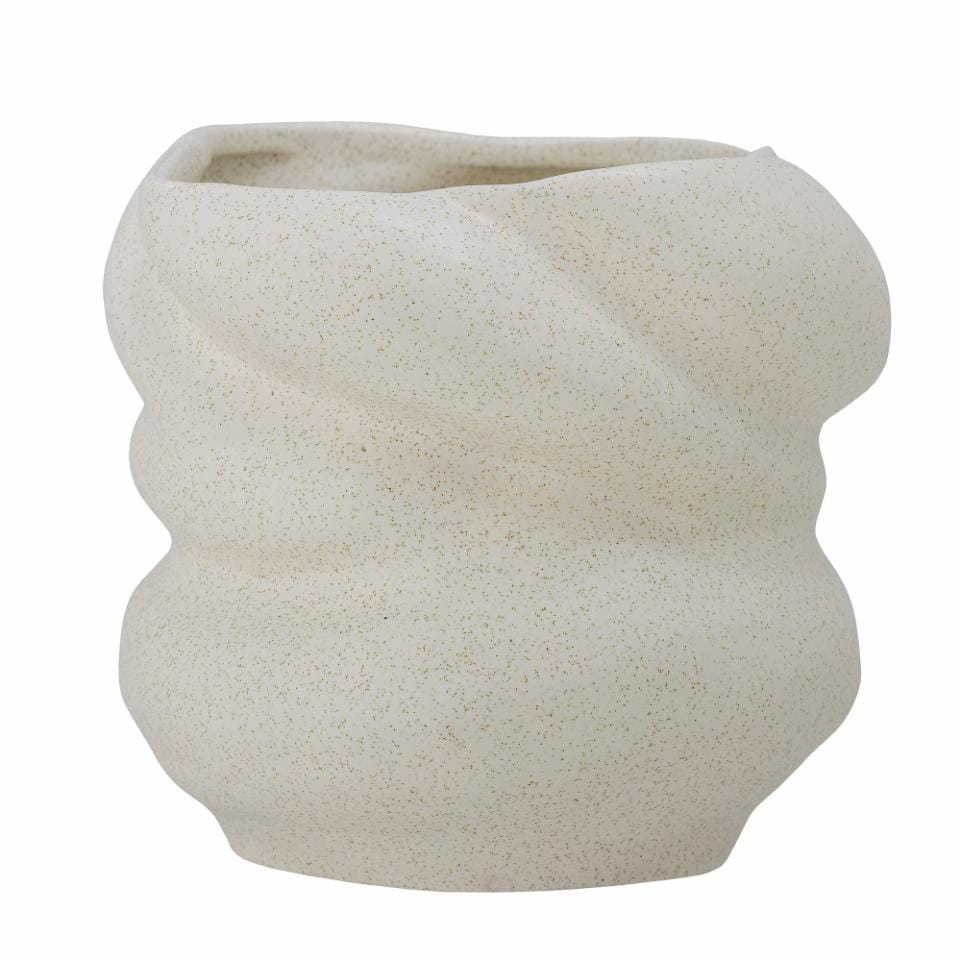 Doniczka Orana marki Bloomingville to kamionkowa doniczka o pięknym organicznym kształcie w odcieniu bieli. Ozdób go wybraną małą rośliną.