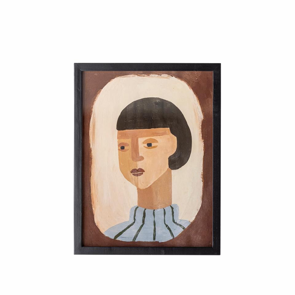 lustracja „Amanda” autorstwa Bloomingville przedstawia graficzny portret w ciemnych odcieniach na jasnym tle. Obraz oprawiony jest w sosnową ramę i ma stylowy wygląd, który doskonale wpasuje się w każde wnętrze.