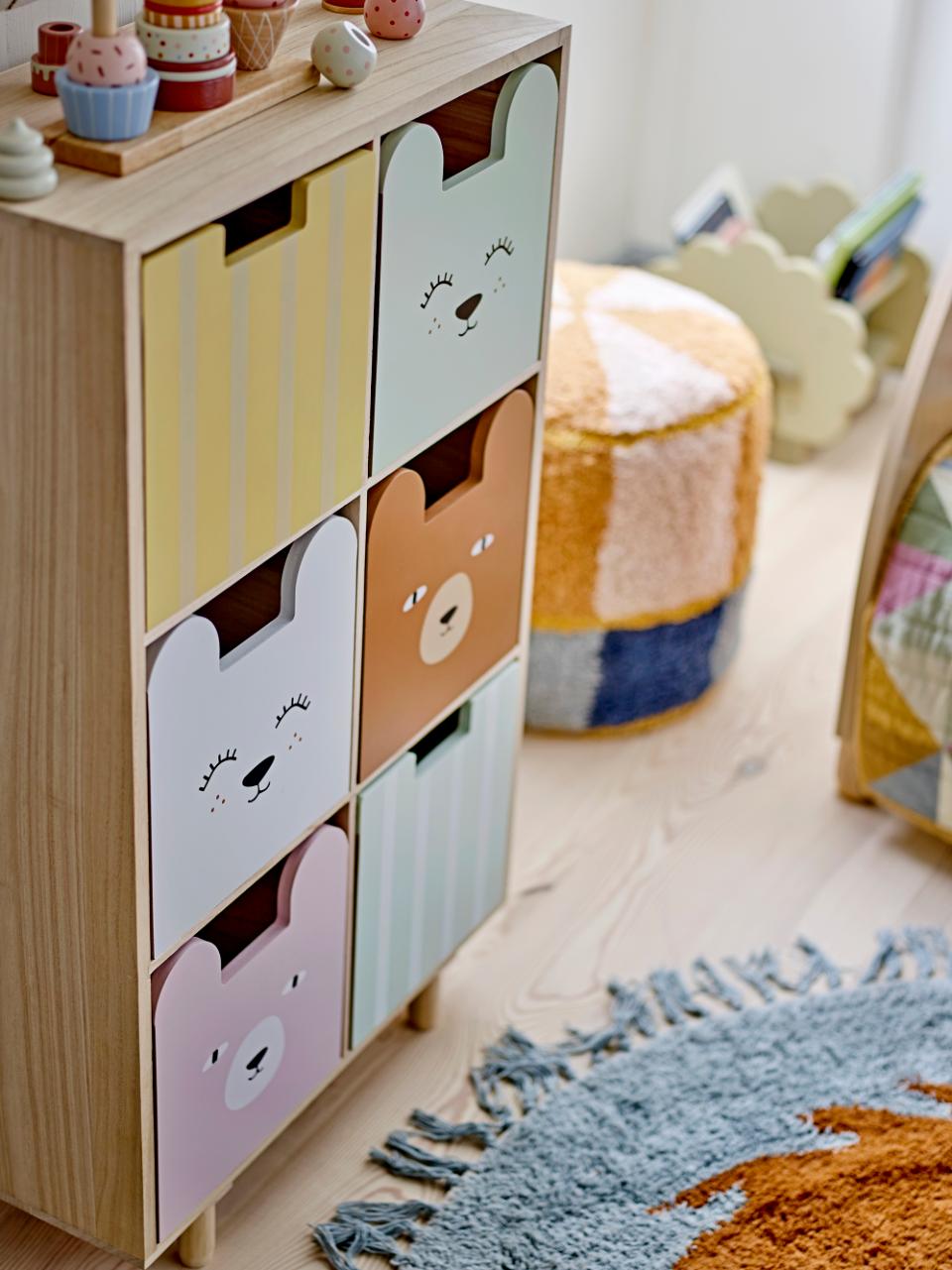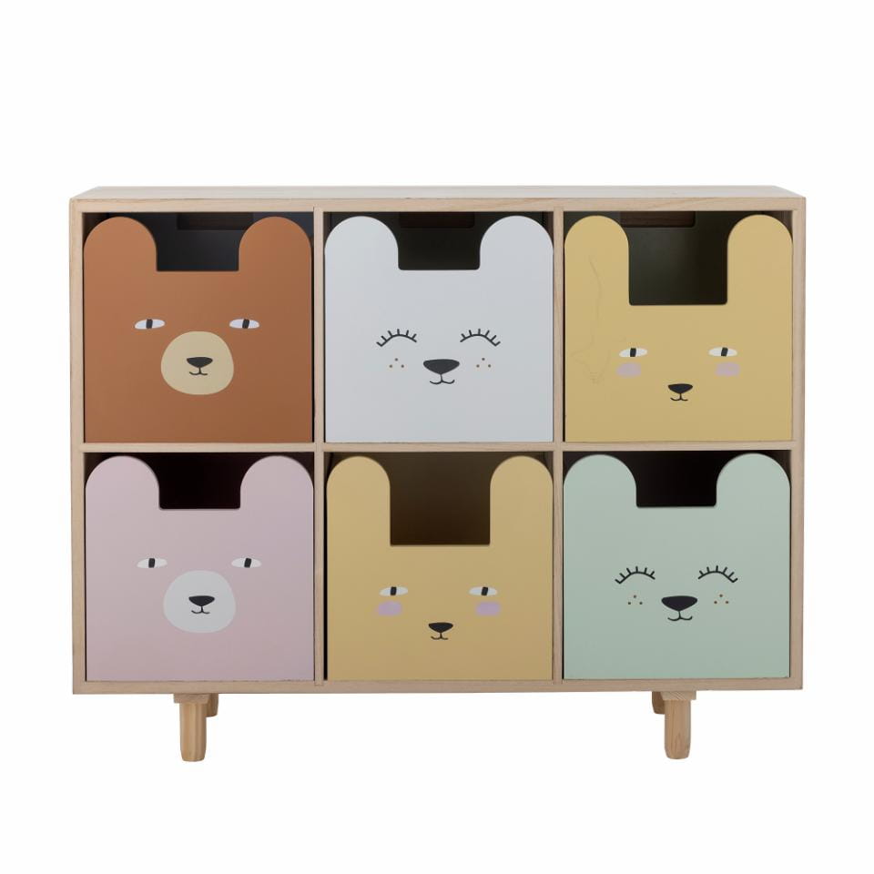 Regał Calle z szufladami marki Bloomingville MINI charakteryzuje się przytulnym i funkcjonalnym designem, który pasuje do każdego pomieszczenia. Szuflady regału są odwracalne, co pozwala wybrać między eksponowaniem uroczych motywów zwierzęcych, wzorów lub prostej strony w kolorze drewna. Ten elastyczny regał można ustawić zarówno pionowo, jak i poziomo, oferując niezliczone możliwości dekoracji i umożliwiając regałowi Calle dostosowanie się do zmieniających się potrzeb domu z biegiem czasu.