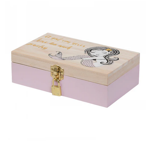 Urocza szkatułka na biżuterię od Bloomingville w pięknym różowym kolorze i z delikatnym motywem. W środku znajduje się 6 przegródek, które pomagają uporządkować biżuterię, a do zestawu dołączona jest mała kłódka, dzięki której skarby można bezpiecznie zamknąć. Na wieczku widnieje napis: „A girl can never have too much jewelry”
