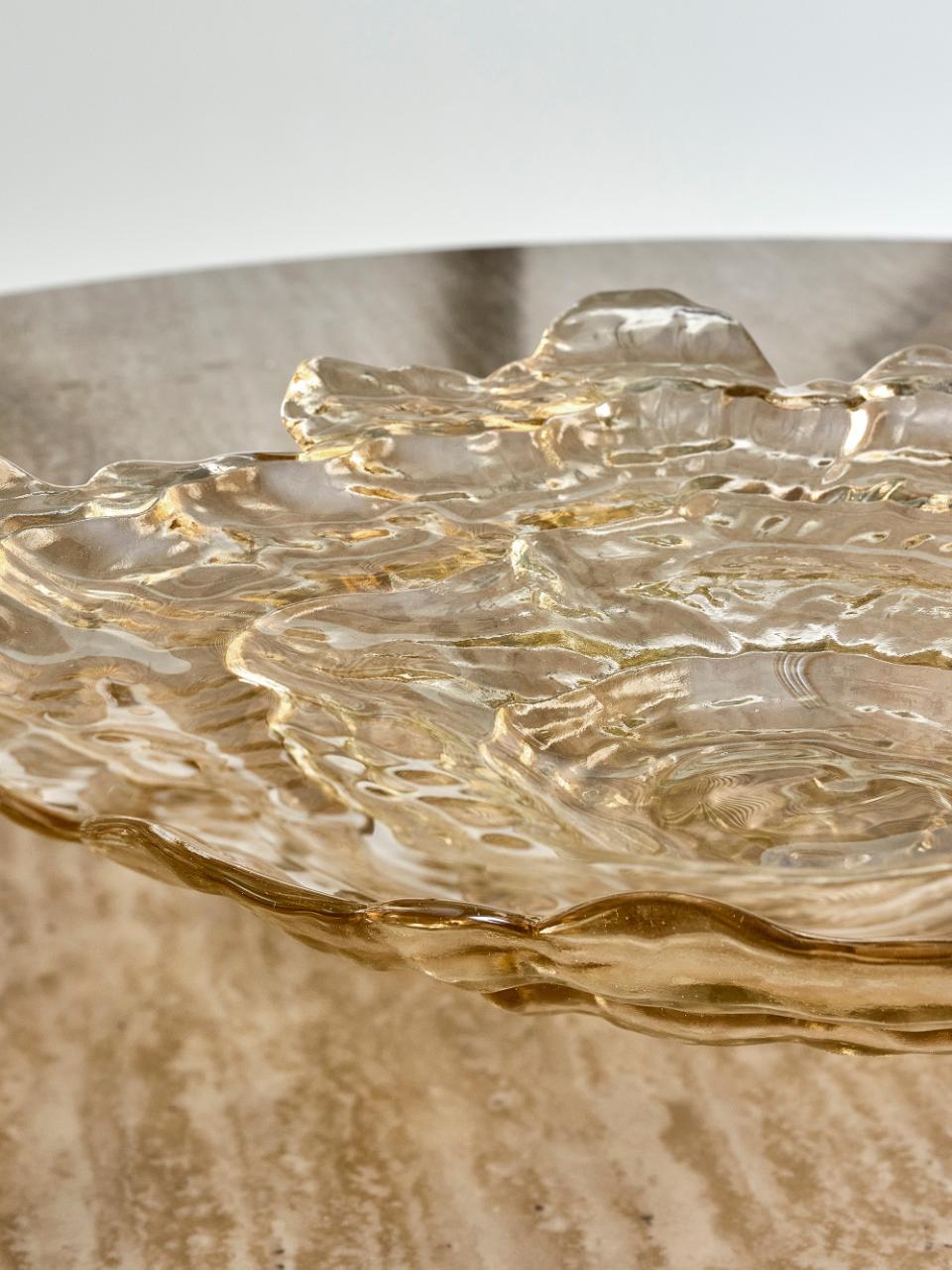 Asimi Bowl marki Bloomingville to szklana misa o barwionej natryskowo powierzchni w delikatnym beżowym odcieniu.Jej delikatnie faliste kontury i półprzezroczyste wykończenie zapewniają wyrafinowany wygląd, który pasuje do różnych aranżacji wnętrz.