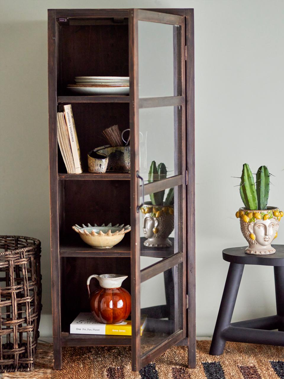 Szafka Marl firmy Creative Collection to piękny mebel do przechowywania o ciepłym, vintage'owym wyrazie. Szafka wykonana jest z drewna sosnowego w ciemnym kolorze, który pięknie komponuje się ze szklanymi drzwiami. Cztery półki szafki zapewniają optymalne przechowywanie naczyń, książek, wazonów i innych ulubionych przedmiotów.