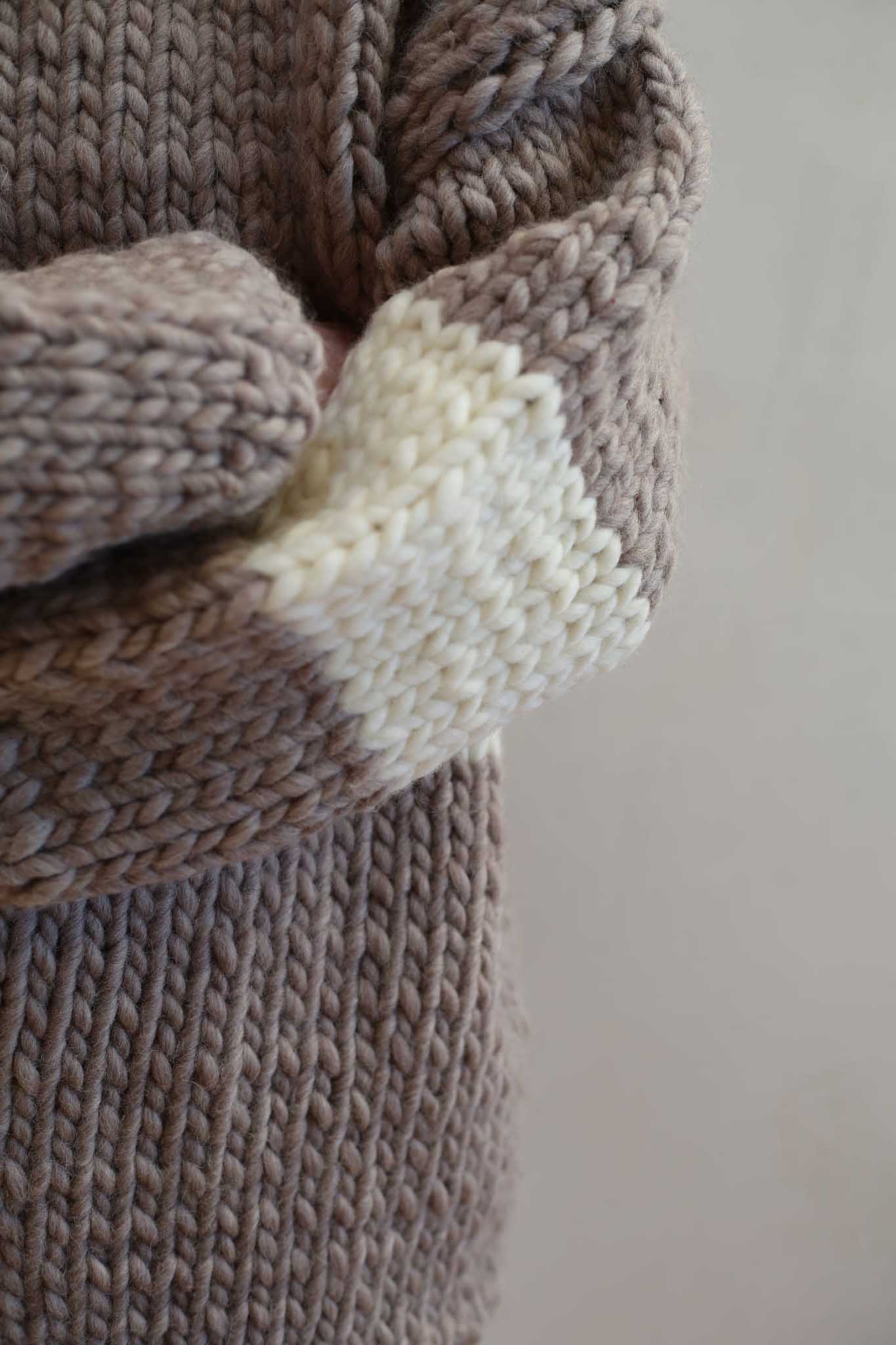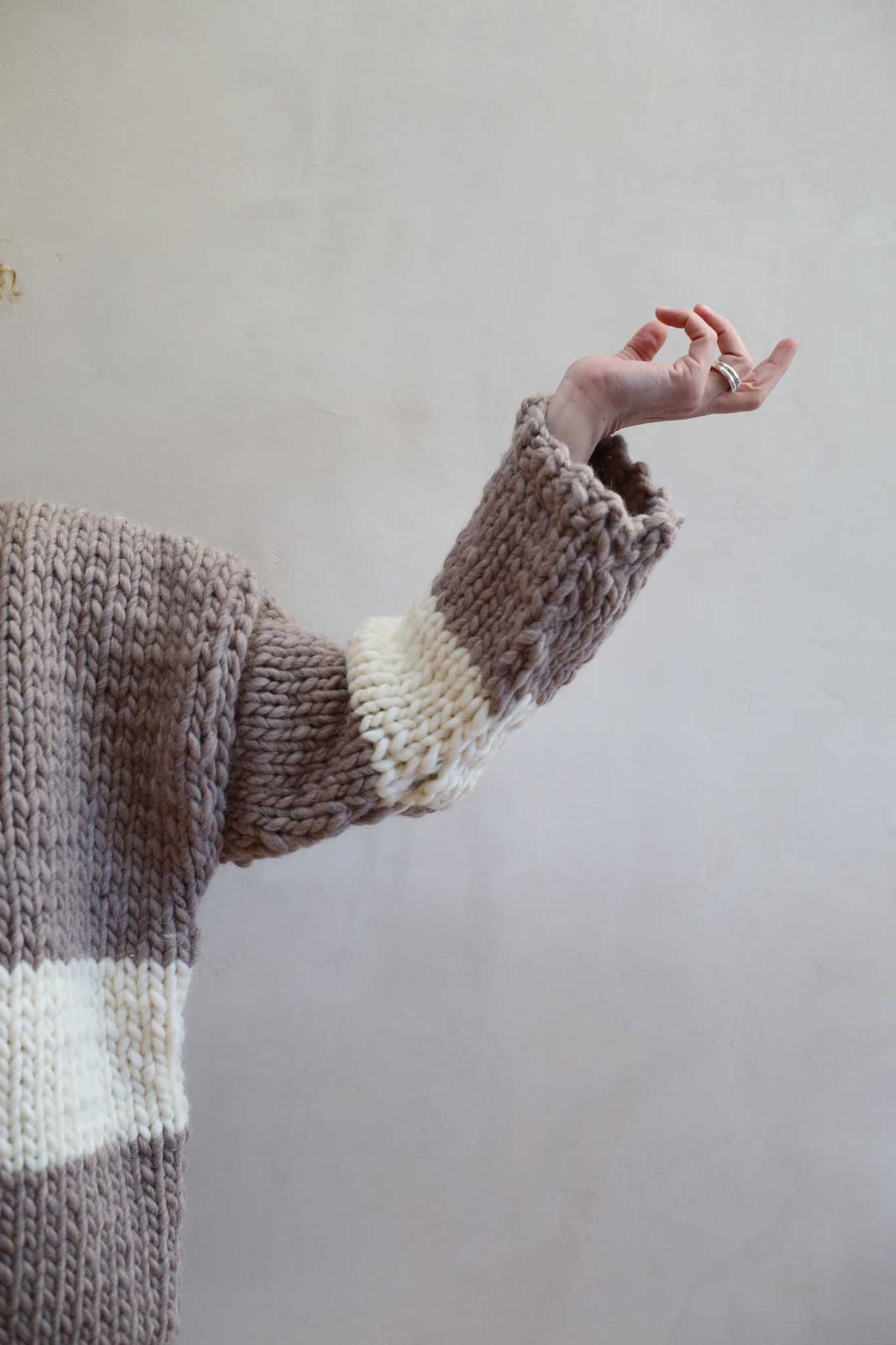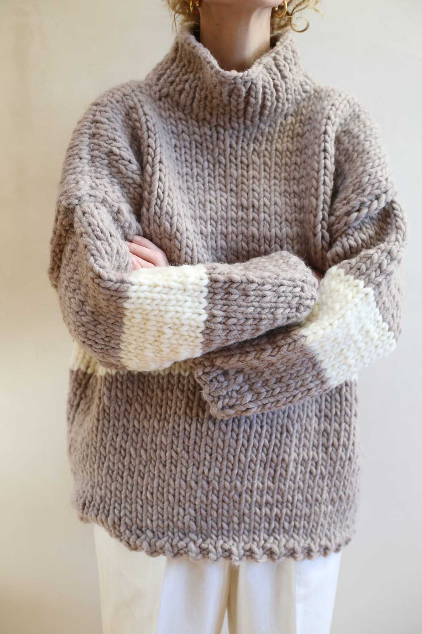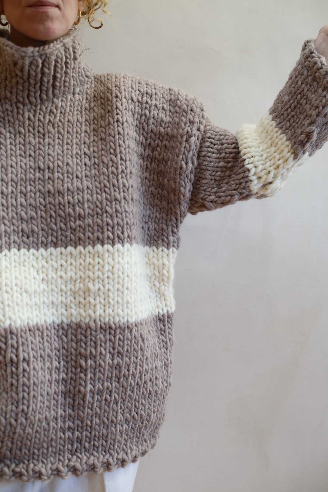 Model Grace to klasyczny, minimalistyczny golf z prostymi rękawami, opuszczonymi ramionami. Mięsisty, wyrazisty ścieg nadaje mu charakteru. Kolor szlachetności i neutralności. Luźny krój współgra z wieloma elementami z szafy. Ręcznie dziergany stanowi wyjątkowy akcent w szafie.