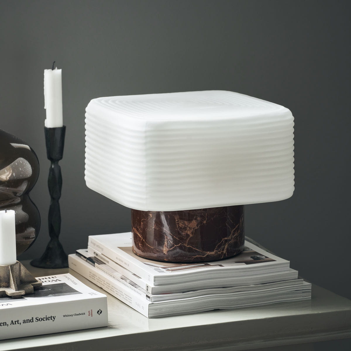 Dzięki tej marmurowej lampie stołowej od House Doctor wystrój Twojego domu zostanie zaktualizowany o nieskończenie elegancki materiał. Neat ma okrągłą podstawę z brązowego marmuru i żebrowany klosz z matowego szkła, które tworzą stylową równowagę. To współczesny projekt pełen kontrastów do odkrycia - od kształtów po kolory, materiały i powierzchnie. Umieść lampę stołową Neat na półce, stoliku nocnym lub w innym miejscu, w którym chcesz stworzyć miękkie oświetlenie i dodać rzeźbiarskiej estetyce swojej przestrzeni.