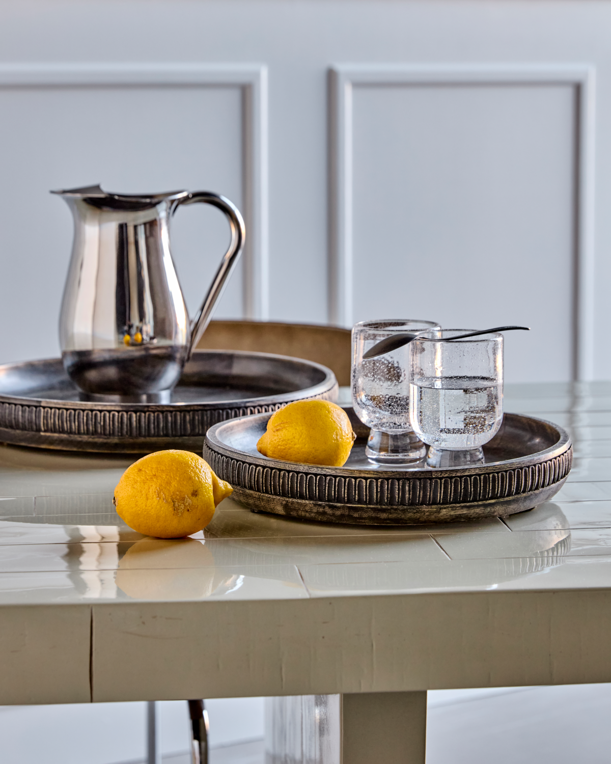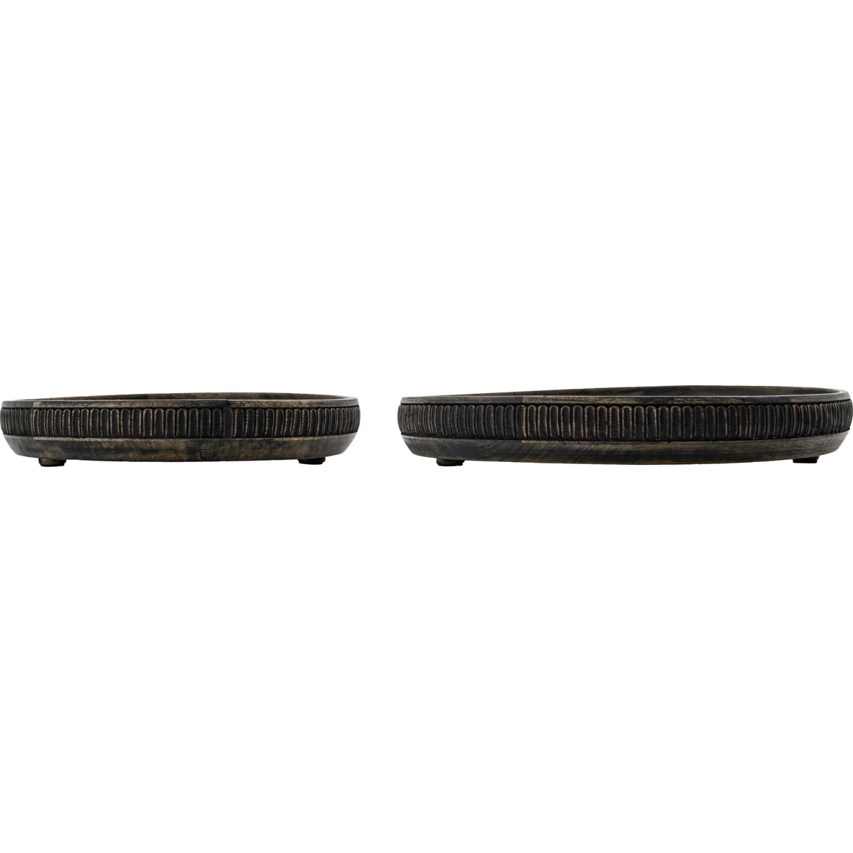 Ręcznie wykonane z drewna mango, te okrągłe tace w kolorze czarnym, bejcowane, dodadzą Twojemu wystrojowi ciepła i rustykalnego uroku. Użyj tego zestawu dwóch tac do uporządkowania przedmiotów w domu lub jako efektownej podstawy pod świece i wazony na stoliku w jadalni lub kawie. Miłe w dotyku wykończenie sprawia, że każda taca jest wyjątkowa, zapraszając zarówno na codzienne chwile, jak i wyjątkowe spotkania.