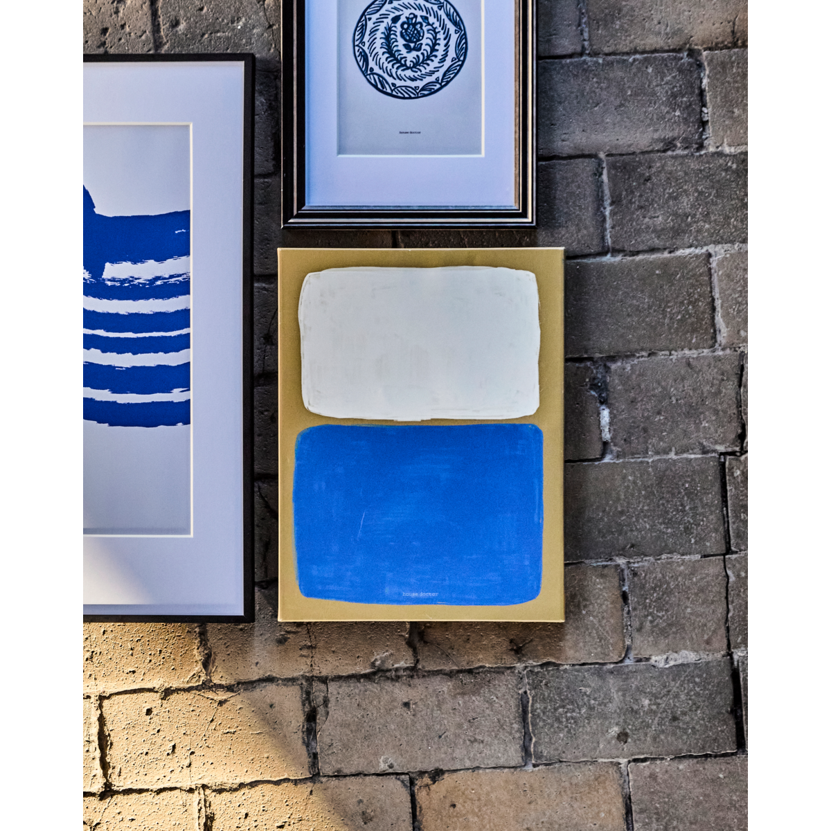 Wprowadź nowoczesny i fajny klimat do swojego wnętrza dzięki tej urzekającej sztuce ściennej. Ten obraz na płótnie z uderzającym motywem graficznym w kolorze niebieskim i złamanej bieli na żywym tle musztardowym dodaje element współczesnego stylu do każdego pomieszczenia. Niezależnie od tego, czy powiesisz go nad szafką nocną, czy w kuchni, będzie stanowił śmiałą deklarację. Aby uzyskać spójny wygląd, połącz go z innymi dziełami sztuki w odcieniach niebieskiego, aby stworzyć stylową ekspozycję na ścianie.