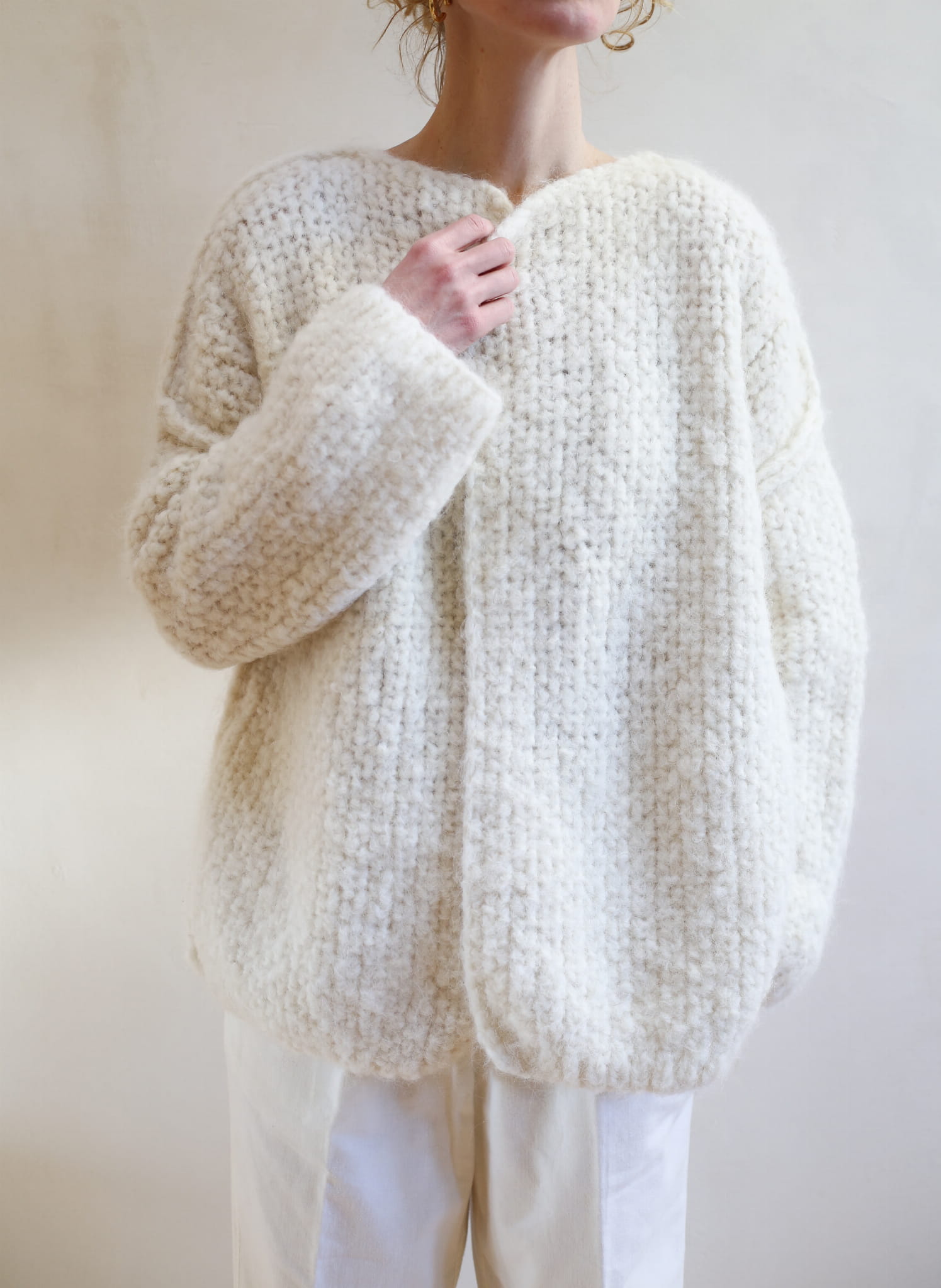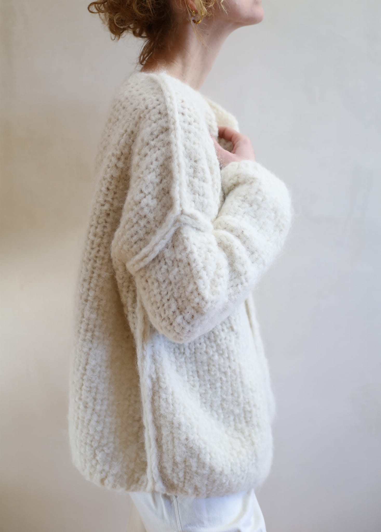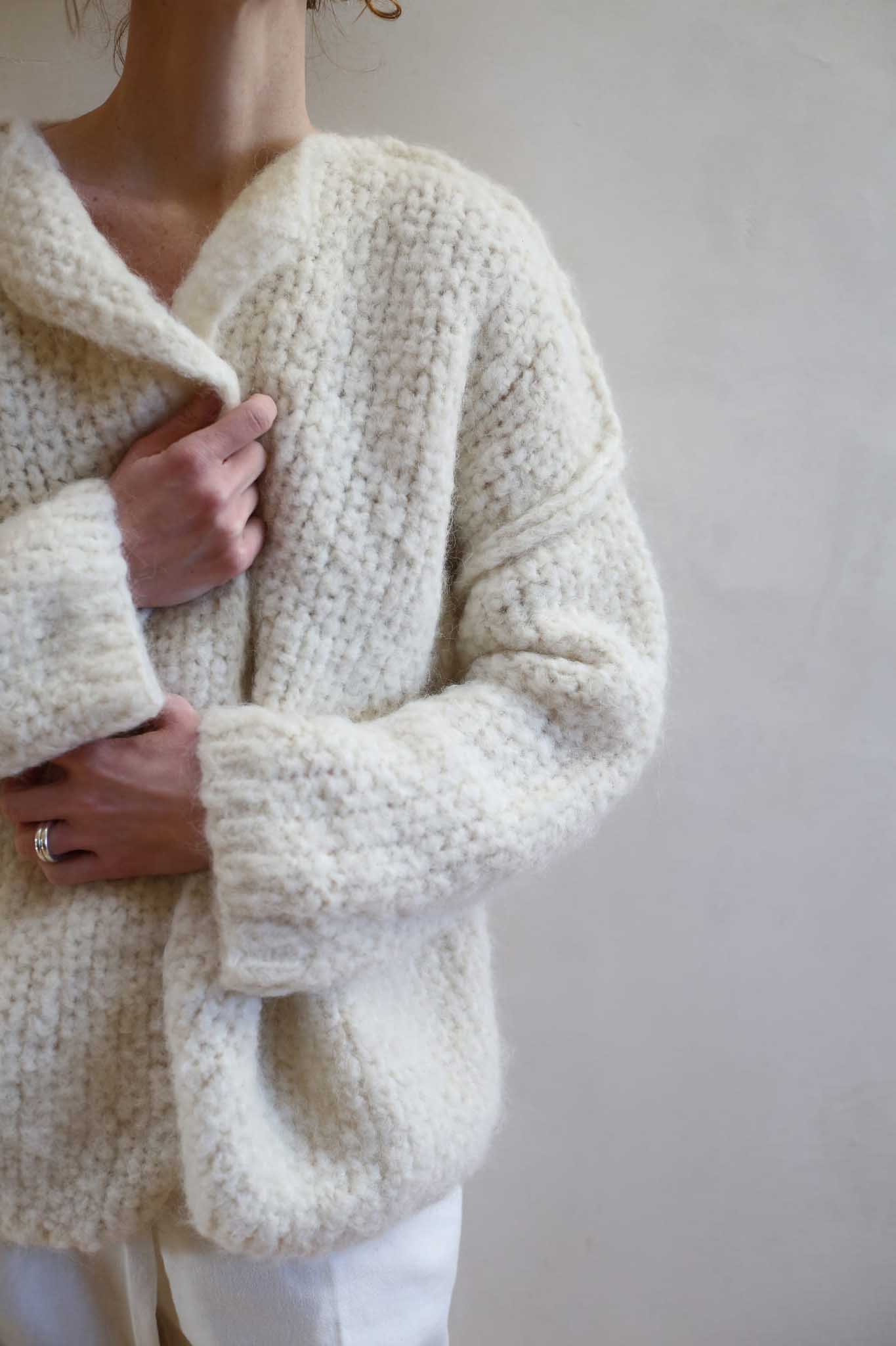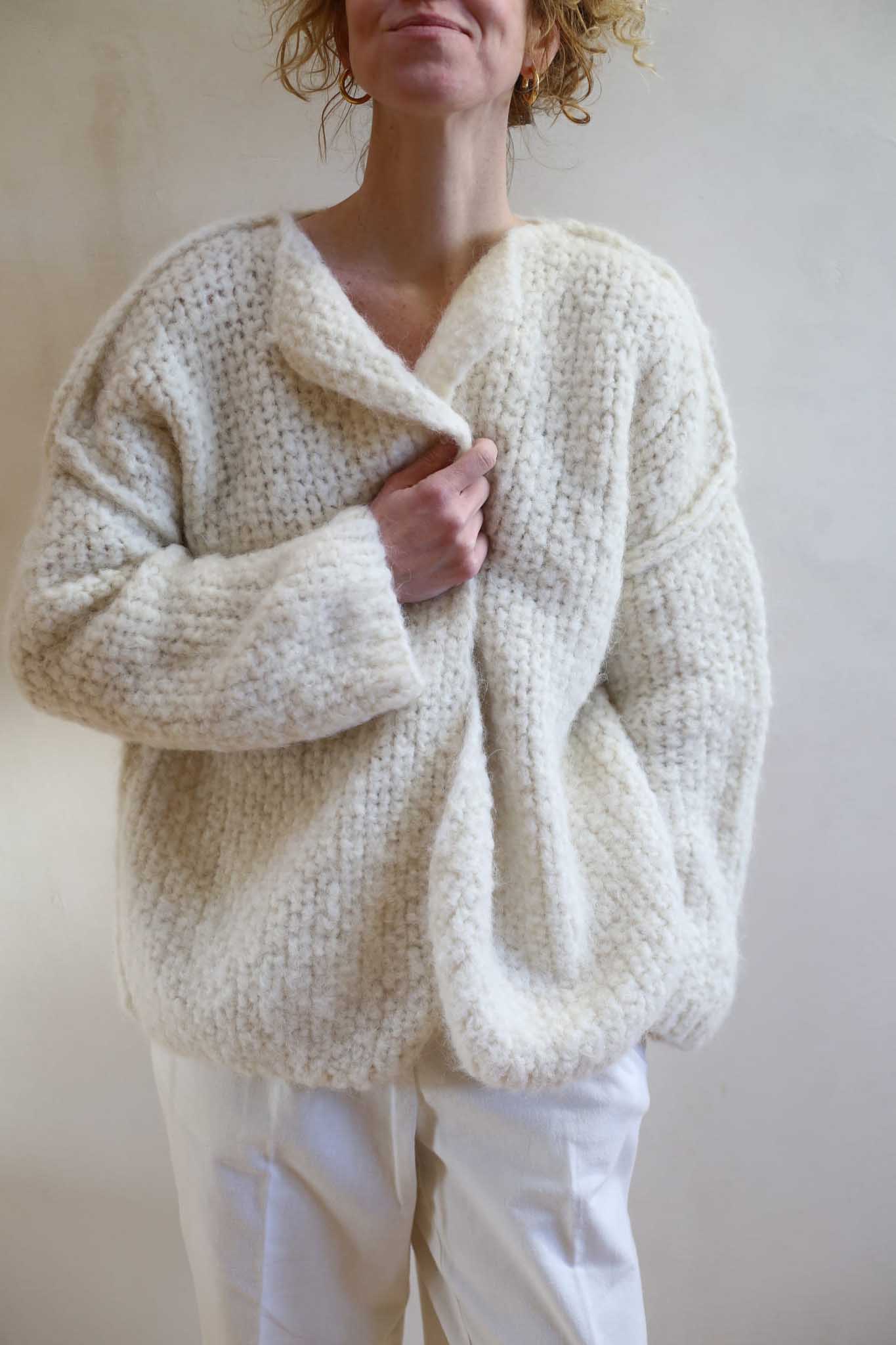 Kardigan Edgar to klasyczny, mięsisty sweter z prostymi rękawami, prostymi połami, opuszczonymi ramionami, wykończonymi zewnętrznymi, ozdobnymi przeszyciami. Miękki i szlachetny w odbiorze dzięki puszystej wełnie. Wygląda bardzo elegancko i ponadczasowo. Pasuje do zwiewnych sukienek, szykowanych strojów jak i klasycznych jeansów. Ten model ma prostą, minimalistyczną konstrukcję. Dodaje mu to nowoczesnej elegancji.