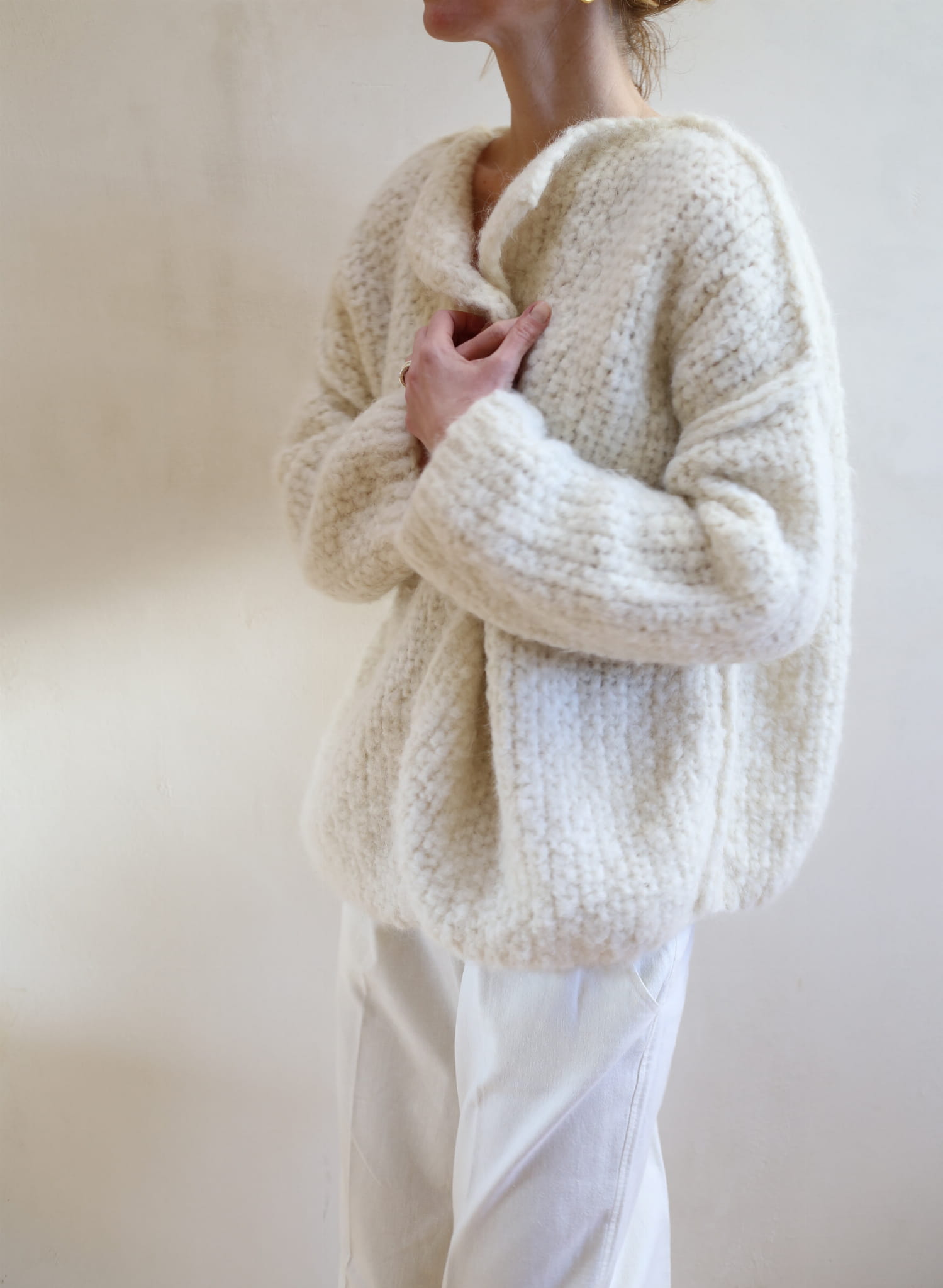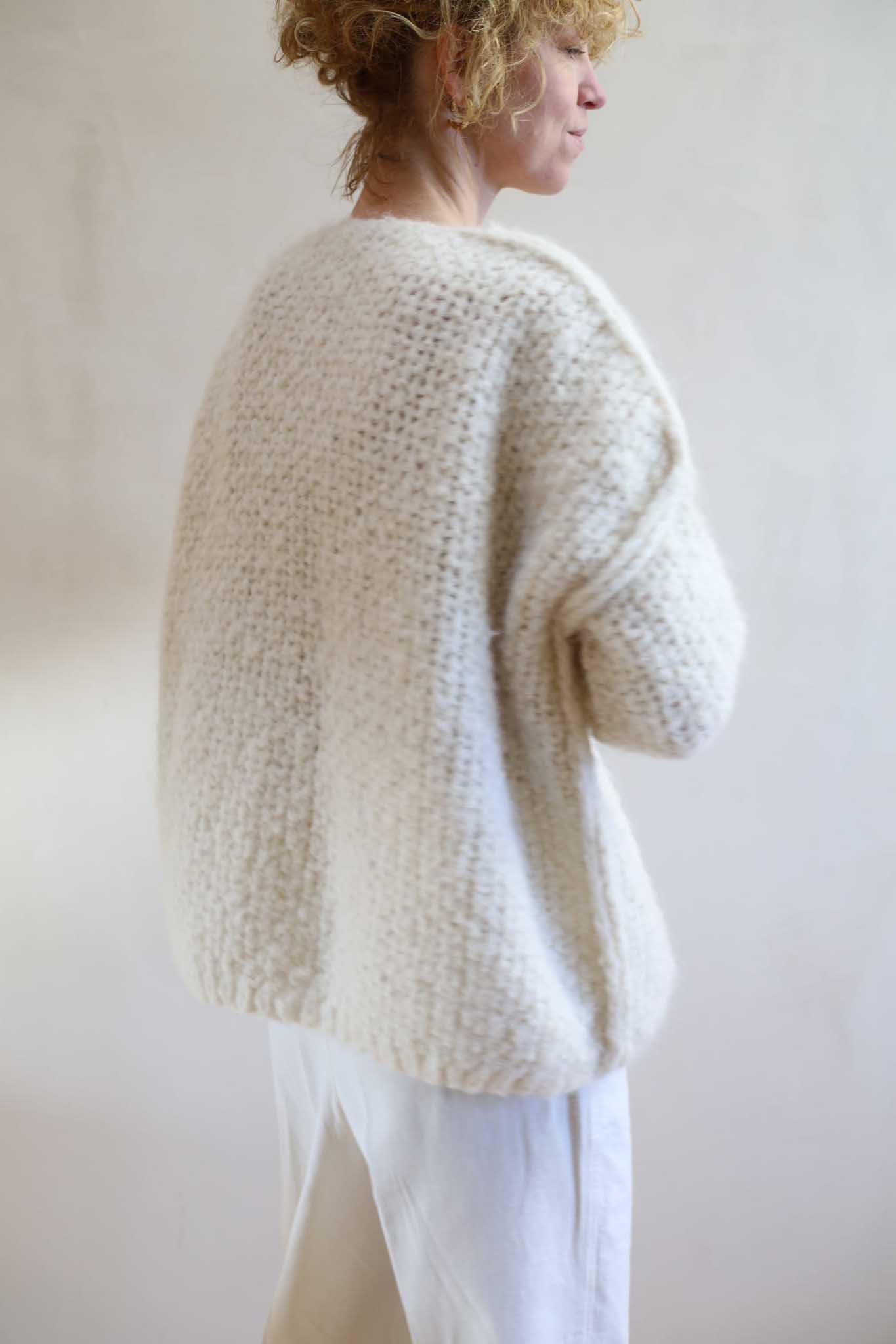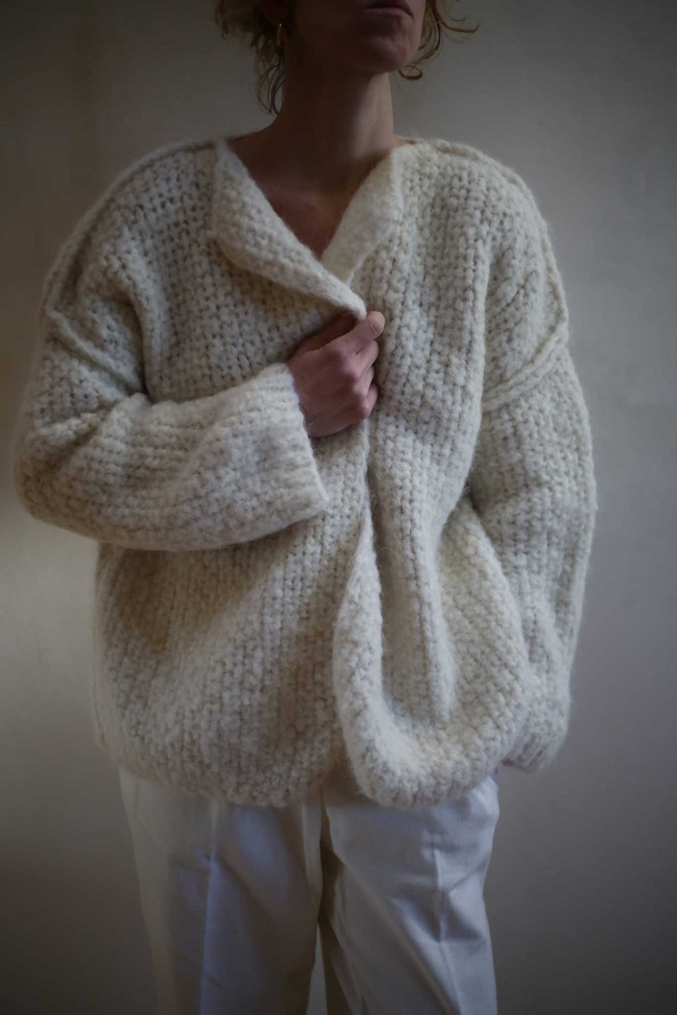 Kardigan Edgar to klasyczny, mięsisty sweter z prostymi rękawami, prostymi połami, opuszczonymi ramionami, wykończonymi zewnętrznymi, ozdobnymi przeszyciami. Miękki i szlachetny w odbiorze dzięki puszystej wełnie. Wygląda bardzo elegancko i ponadczasowo. Pasuje do zwiewnych sukienek, szykowanych strojów jak i klasycznych jeansów. Ten model ma prostą, minimalistyczną konstrukcję. Dodaje mu to nowoczesnej elegancji.
