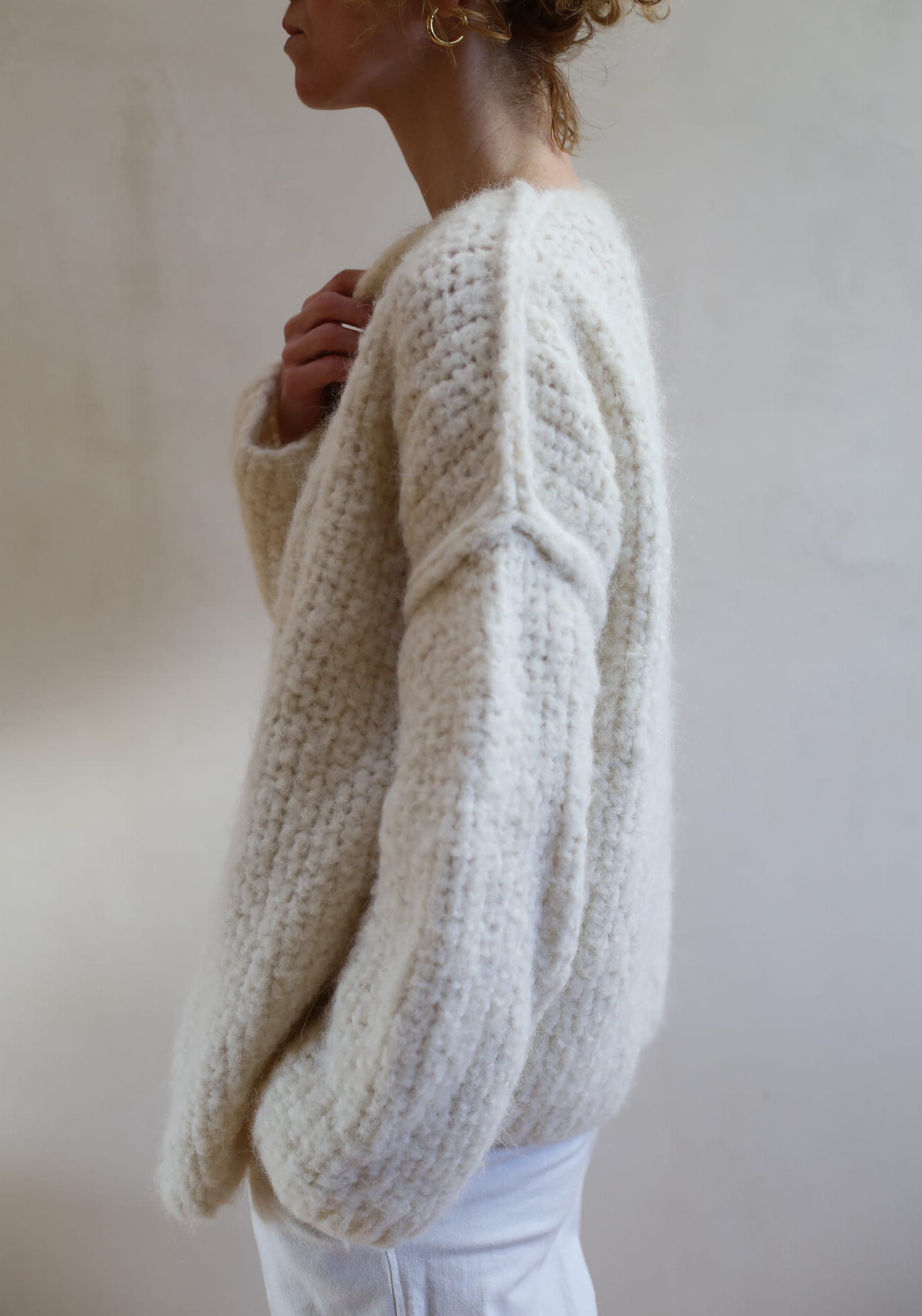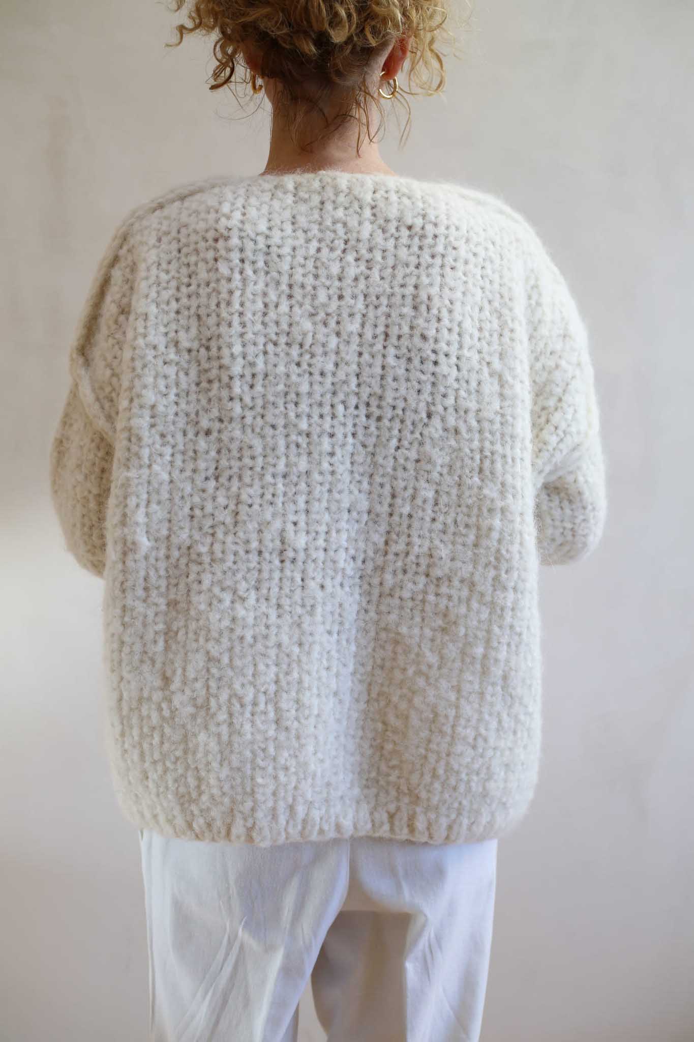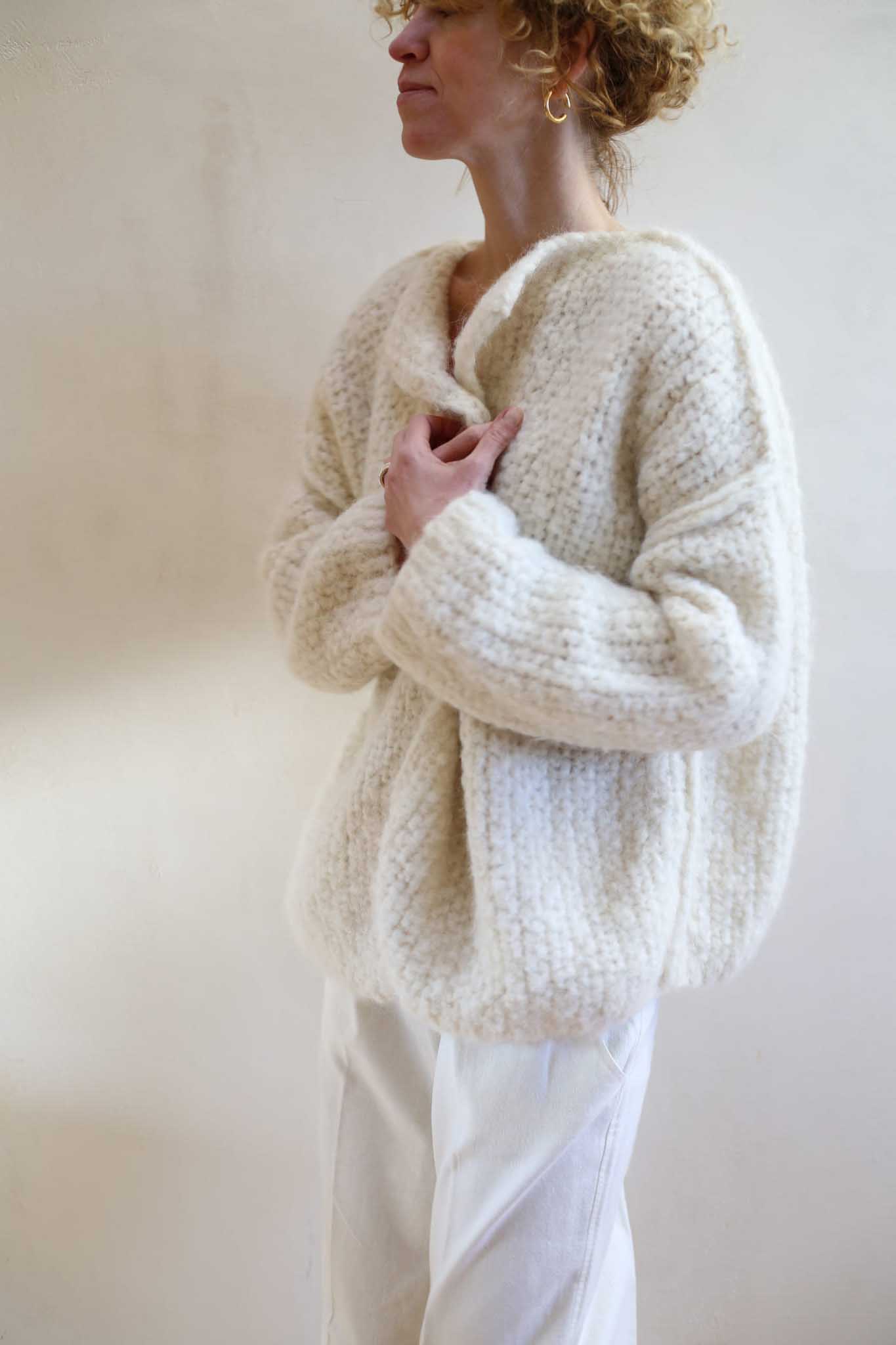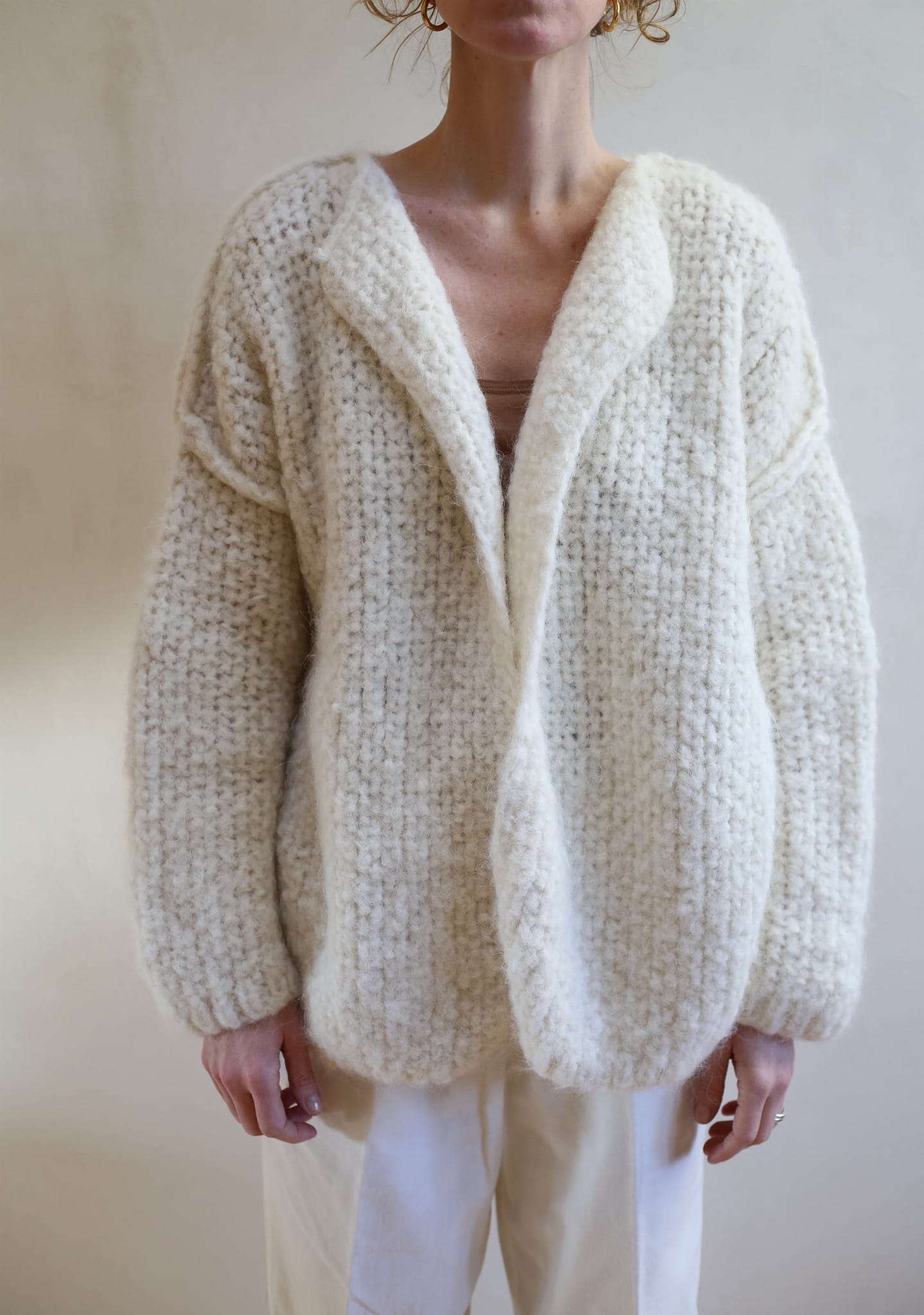 Kardigan Edgar to klasyczny, mięsisty sweter z prostymi rękawami, prostymi połami, opuszczonymi ramionami, wykończonymi zewnętrznymi, ozdobnymi przeszyciami. Miękki i szlachetny w odbiorze dzięki puszystej wełnie. Wygląda bardzo elegancko i ponadczasowo. Pasuje do zwiewnych sukienek, szykowanych strojów jak i klasycznych jeansów. Ten model ma prostą, minimalistyczną konstrukcję. Dodaje mu to nowoczesnej elegancji.
