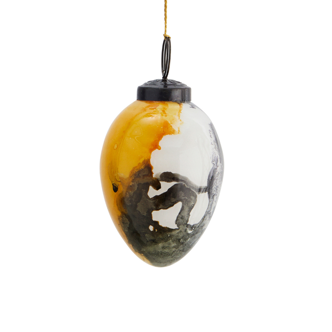Szklane jajko wielkanocne z kolekcji Madam Stoltz. Jajko wykonane ręcznie, ze szkła barwionego w przepiękne kolory wiosny. Jajko o oryginalnym wykończeniu, zawieszone na bawełnianym, złotym sznureczku z ozdobnym frędzlem /chwostem. Sięgnij po tę uroczą dekorację przygotowując świąteczny stroik wielkanocny lub dekorując gałęzie w wazonie. Oryginalne, barwione szklane jajka Madam Stoltz stworzą piękną kompozycję ułożone samodzielnie na tacy.