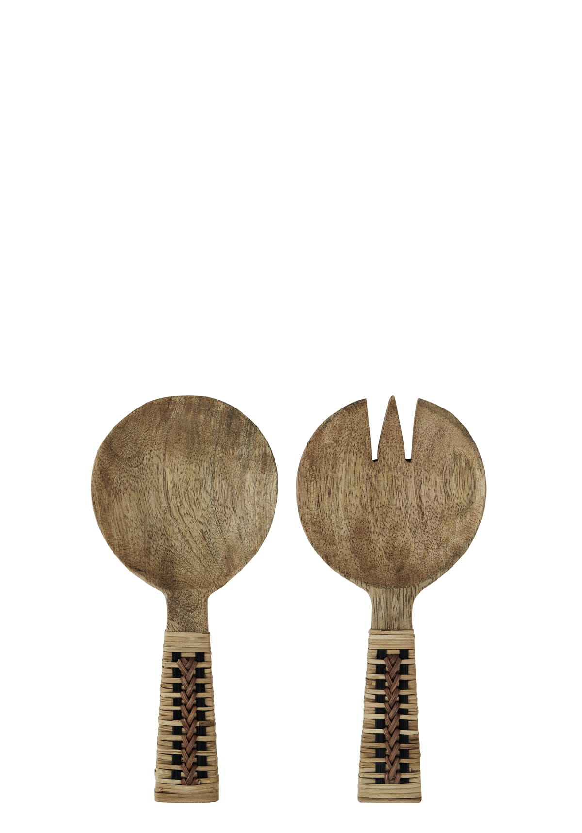 Drewniany zestaw do łyżek serwowania z uchwytem z Madam Stoltz. Drewniane sztućce są w pełni funkcjonalne. Jedzenie czy serwowanie przy pomocy drewnianych sztućców nie zmienia smaku potraw. Są przeznaczone są zarówno do ciepłych, jak i zimnych potraw. Wyglądają dużo bardziej elegancko podczas okolicznościowych imprez niż wszędobylski plastik. Zarówno drewniane widelce, jak i noże, czy też mieszadełka drewniane i inne rodzaje drewnianych sztućców powstają, jak sama nazwa Sztućce są polerowane są mechanicznie, co pozwala uniknąć chemicznych dodatków. Wykonane z odnawialnego surowca – drewna co powoduje, że nie szkodzą środowisku, a wręcz mogą je z powrotem zasilić. Drewniane sztućce poddawane są specjalnej obróbce, która niweluje rozwarstwianie się materiału, a także zapewnia im przyjemny dla oka wygląd.