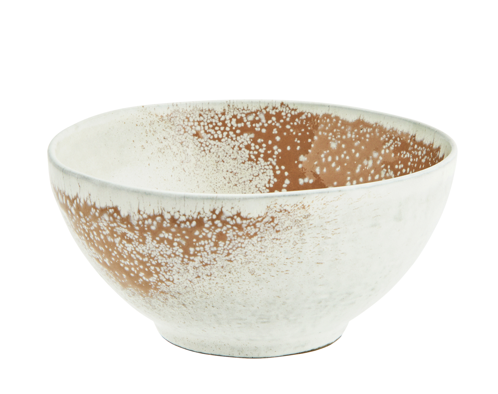 Miska z kamionki marki Madam Stoltz w kolorach naturalnej bieli i pomarańczowego to doskonała propozycja, by uzupełnić zastawę stołową na wiosenne dni.