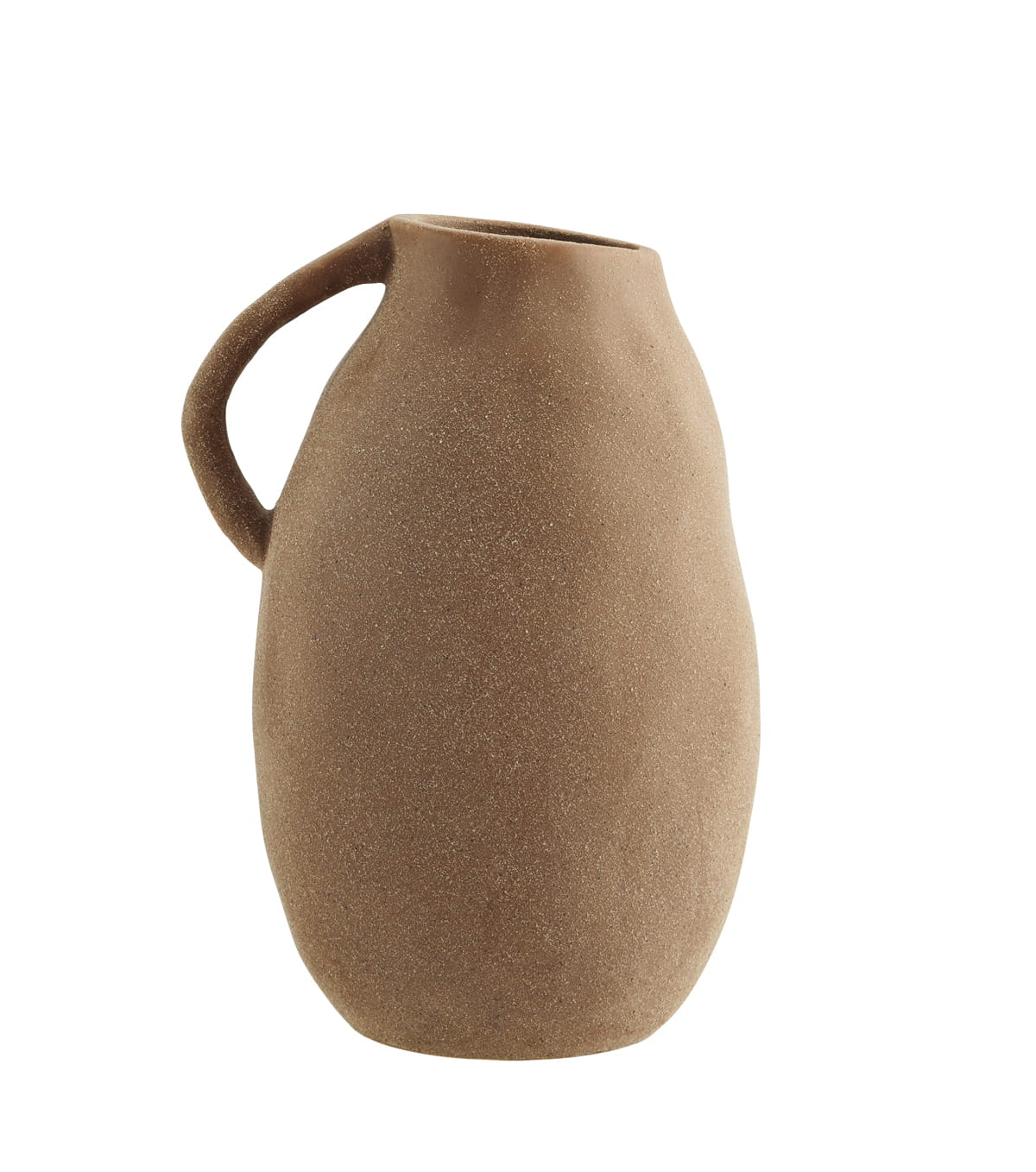 Minimalistyczny wazon Madam Stoltz wykonany z kamionki otrzymał prostą,ma prostą formę, która nada nowy wygląd i świeżość w Twoim domu. Może się okazać, że wykończenie jest nieco niedoskonałe, ale jest to naturalna część projektu, biorąc pod uwagę, że wazon jest wykonany ręcznie. Połącz go z innymi wazami w mniejszych rozmiarach i stwórz rzeźbiony narożnik na swoim parapecie lub na bocznym stoliku. przeznaczony do przechowywania roślin suchych oraz sztucznych. Nie napełniać wodą.