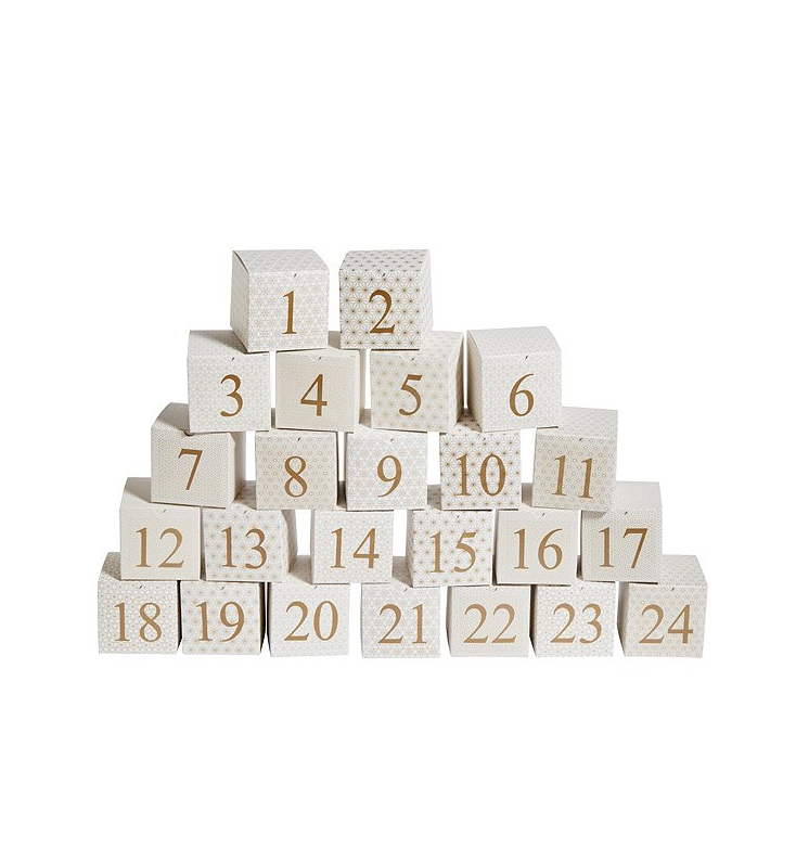 Dla zabieganych! Pudełka na kalendarz adwentowy marki Nordal prezentują się niezwykle elegancko i są ozdobione drobnymi, różnorodnymi wzorami w odcieniach złota i szarości. 24 duże, błyszczące złote cyfry budzą ciekawość i zachęcają do odkrywania zawartości. Słodycze, lakier do paznokci, bombki, perfumy czy para skarpetek — wszystko to z łatwością schowasz w tych pięknych pudełeczkach, sprawiając obdarowanej osobie ogromną radość.
