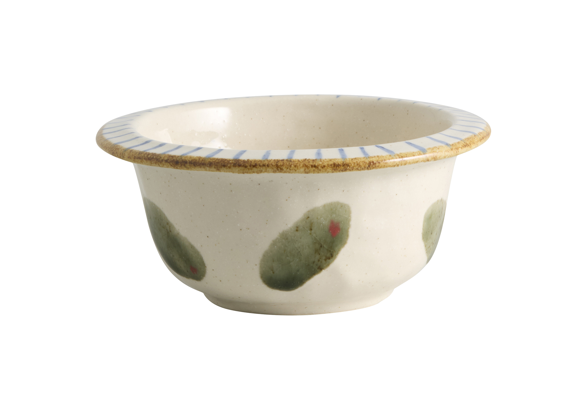 Miska OLEA od Atelier FORMA łączy figlarną dekoracyjność z ponadczasowym rzemiosłem. Ręcznie malowane zielone liście i niebieskie paski tworzą żywy, artystyczny wzór, a wyraźnie zarysowany rant dodaje projektowi równowagi i charakteru. Idealna do niewielkich porcji lub jako dekoracyjny akcent we wnętrzu. Każda miska jest wyjątkowa — formowana i wykańczana ręcznie. Pojemność: około 250 ml.