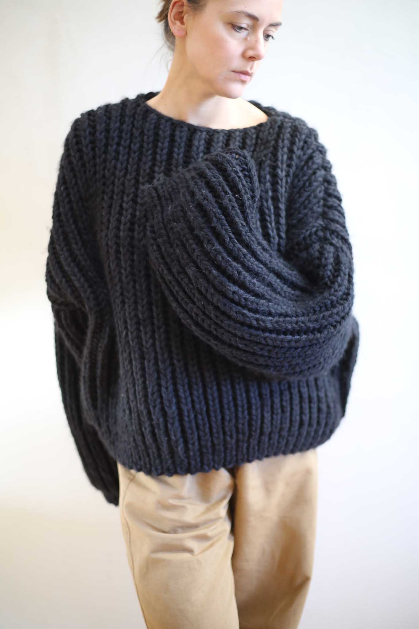 Mięsisty, ciężki i ciepły. Dzięki nowoczesnej konstrukcji nadaj się do wielu elementów z garderoby. Ręcznie dziergany w Polsce. Jak wszystkie fasony September ma przeskalowaną formę i prestiżowy kształt.