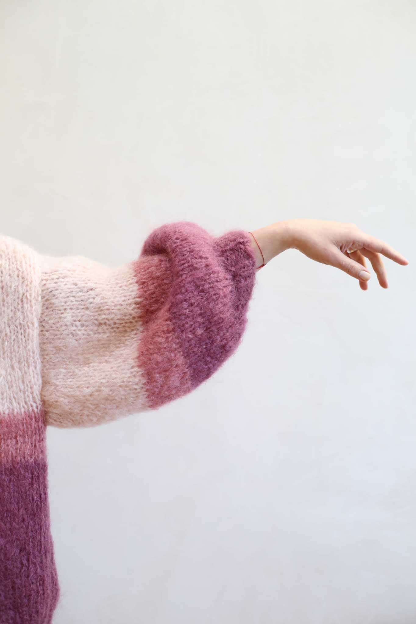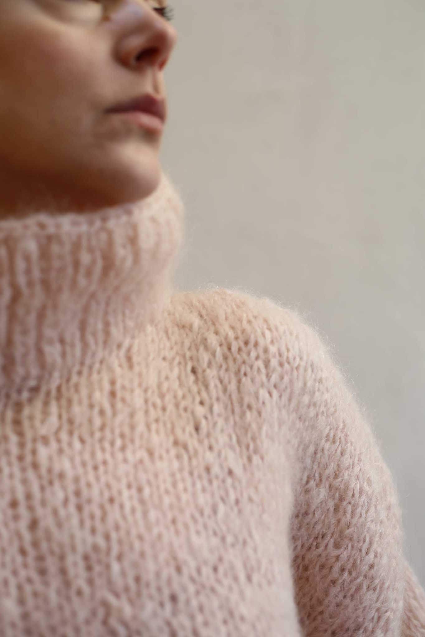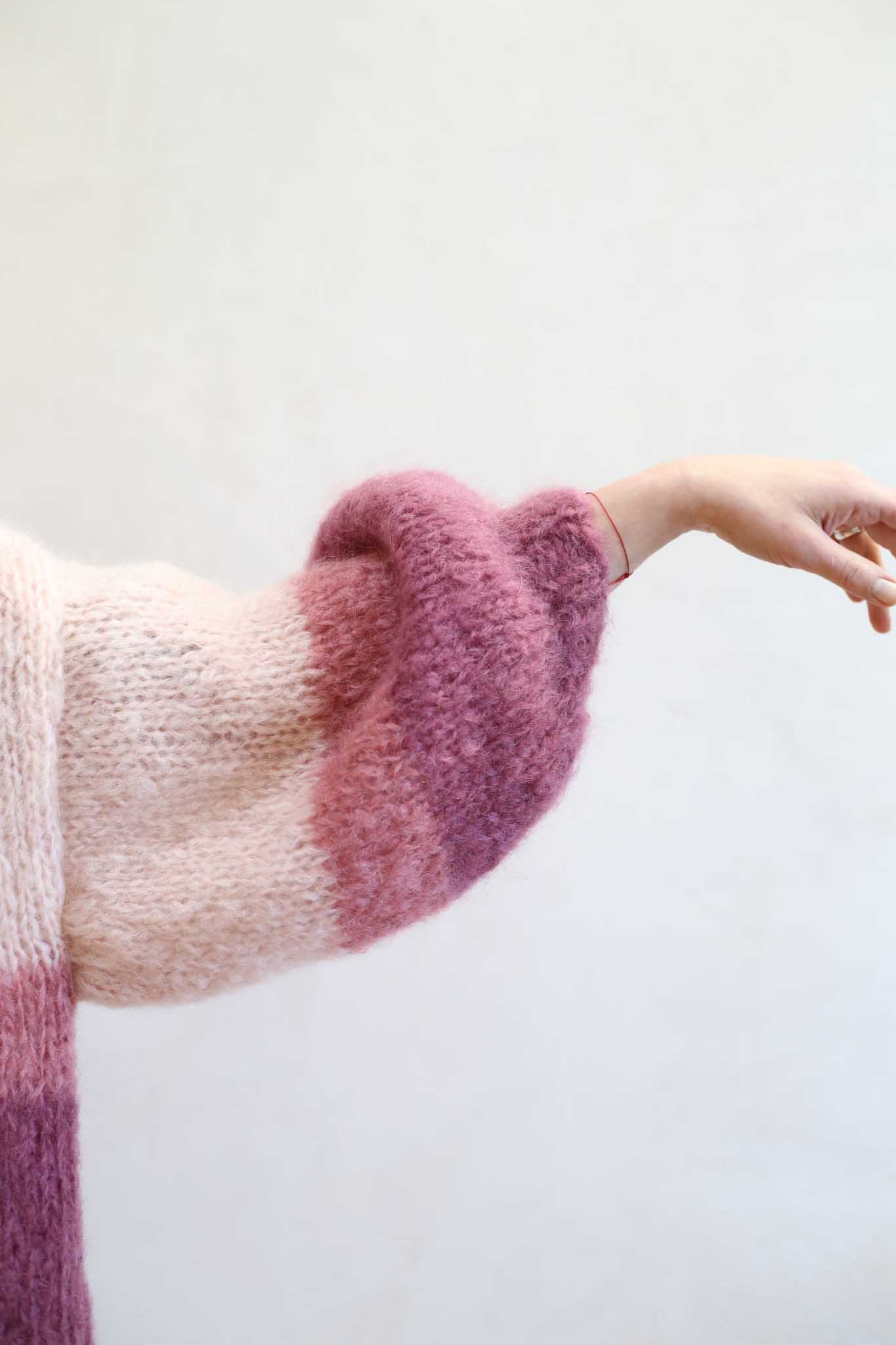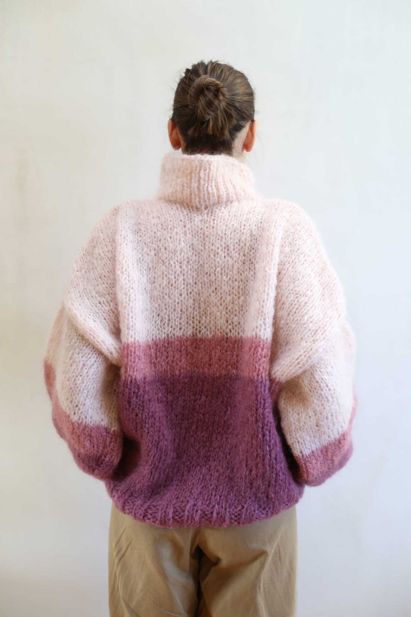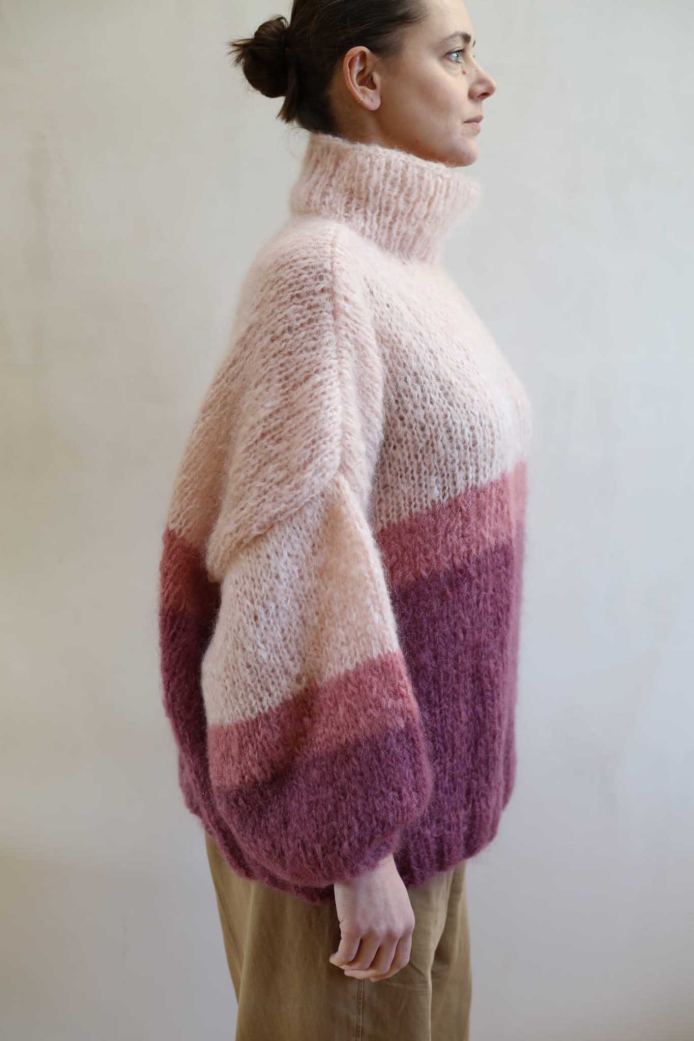 Model Sofia to obszerny a jednak wizualnie lekki golf wykończony różnymi tonacjami różu. Przy twarzy jest ta najjaśniejsza i świetlista barwa, która działa jak róż w makijażu. Dodaje uroku i blasku. Ten sweter ma luźne, zwieńczone wąskim mankietem rękawy. Dzięki takiej konstrukcji wygląda bardzo kobieco i nowocześnie zarazem. Jest lekki, miękki, otulający. Mimo subtelnych kolorów jest charakterystyczny i wyrazisty.