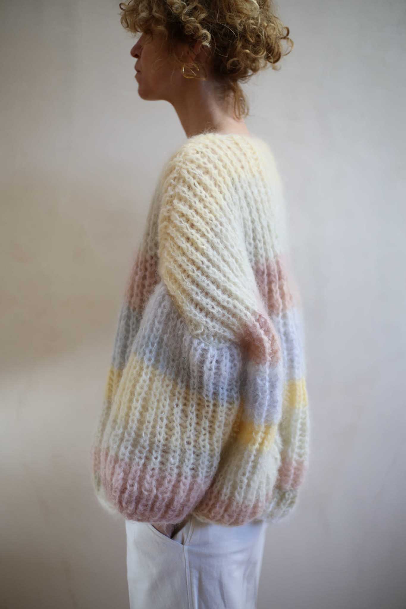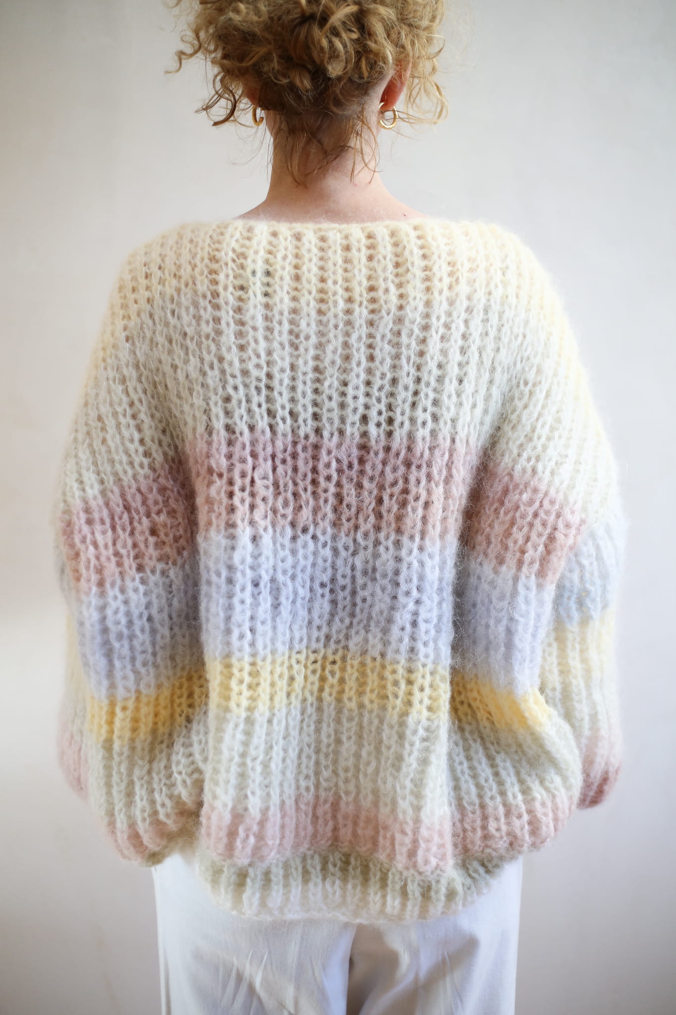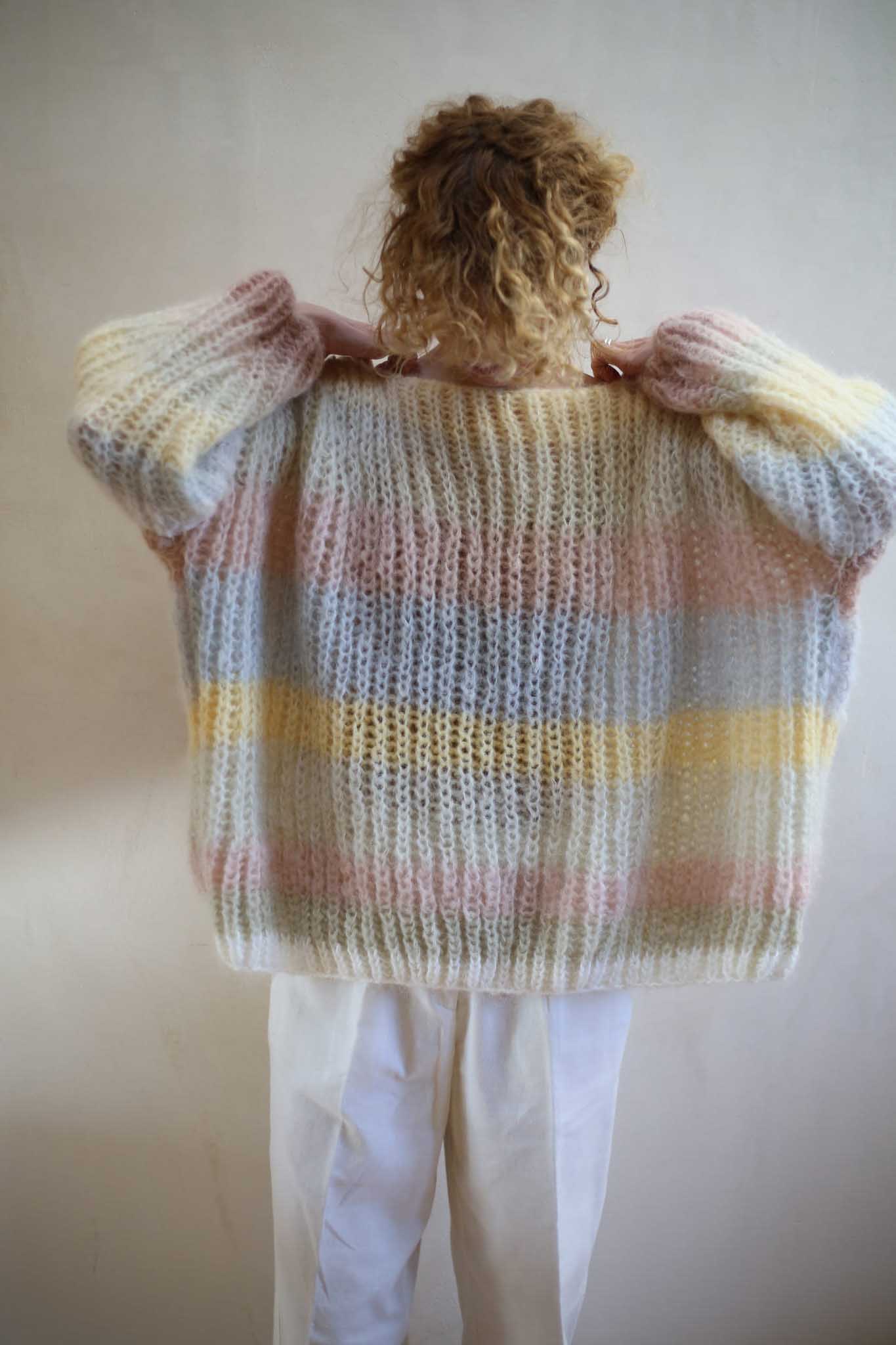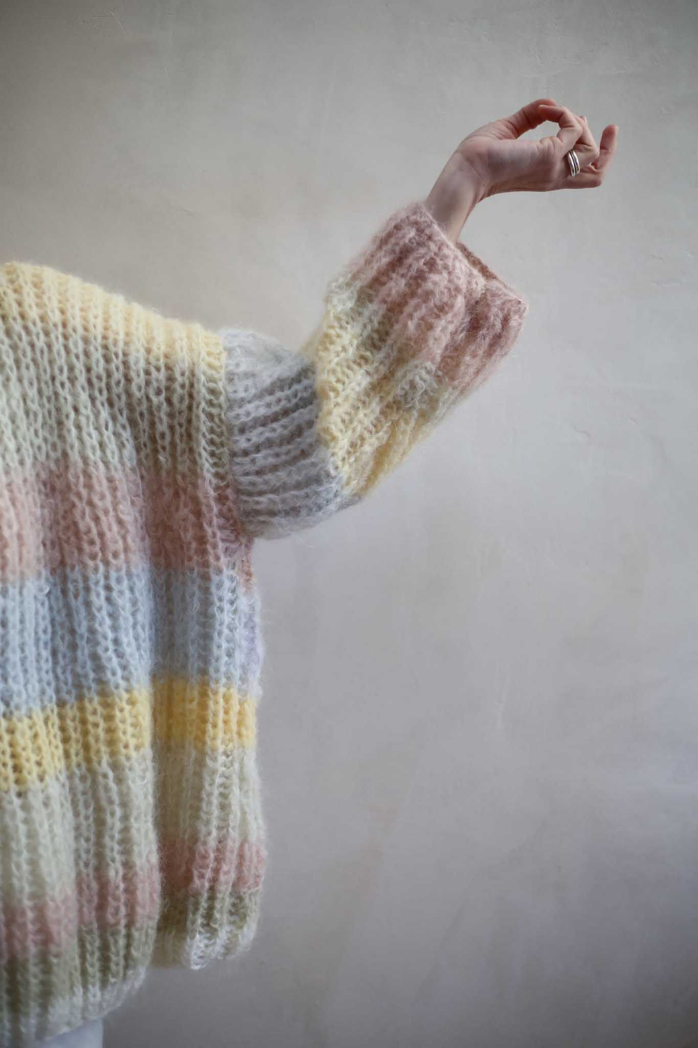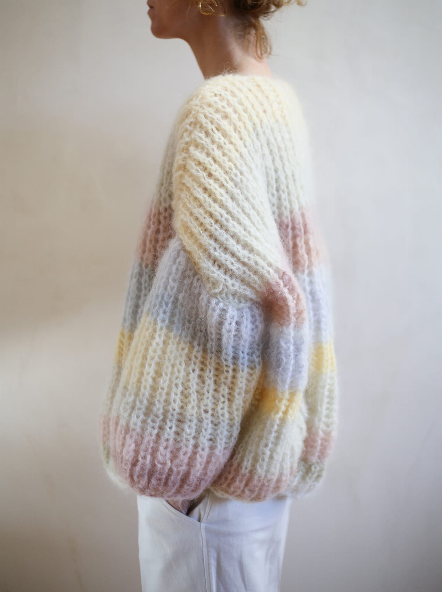 Model Teresa to mięsisty sweter z szerokimi, prostymi rękawami, dekoltem w łódkę, opuszczonymi ramionami. Lekki i szlachetny w odbiorze dzięki puszystej wełnie. Wygląda bardzo nowocześnie i świeżo. Pasuje do zwiewnych spódnic, jak i klasycznych jeansów. Ten model ma prostą, minimalistyczną konstrukcję. Piękne, subtelne kolory, od śmietanki po odcienie różu.