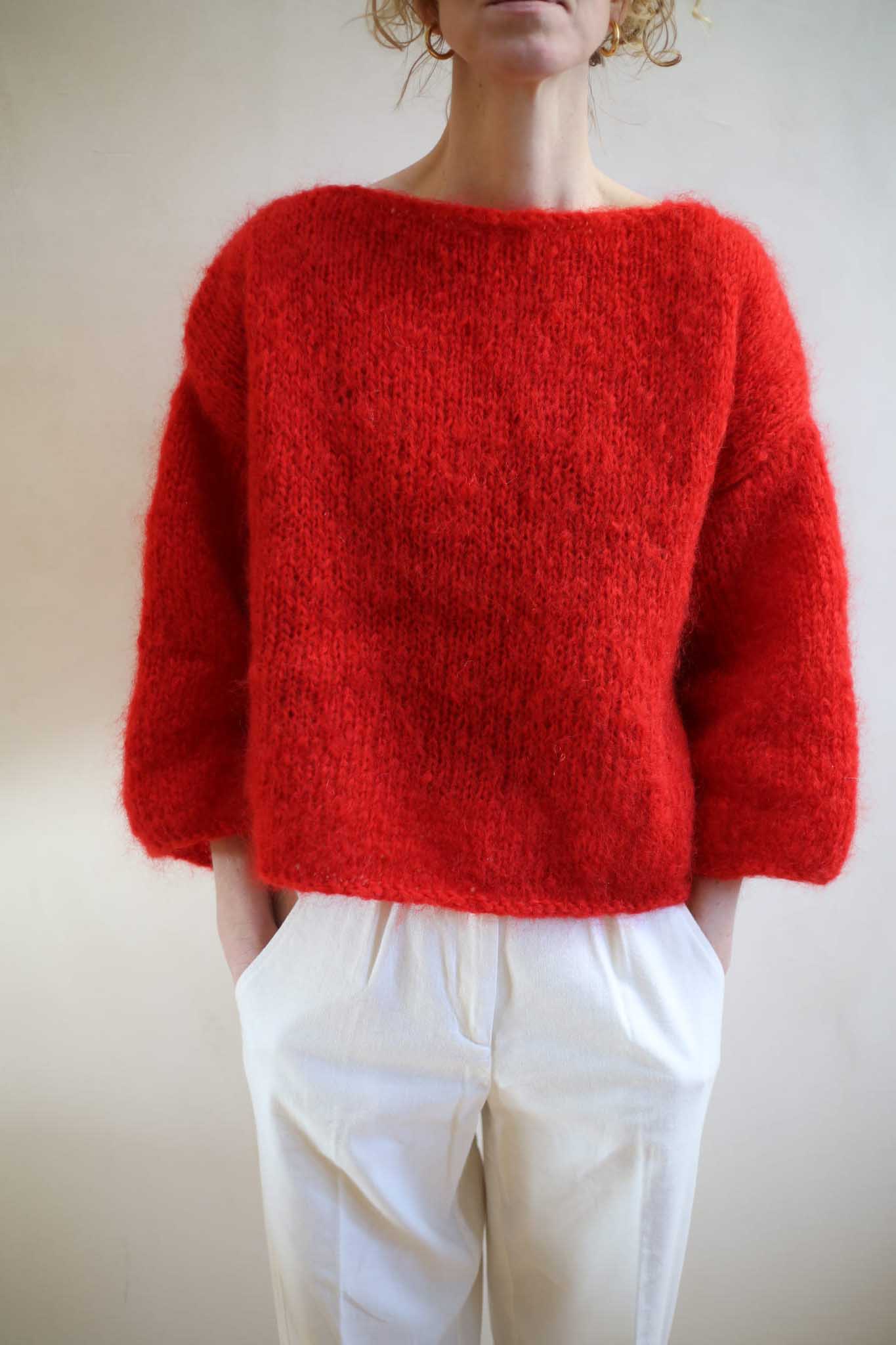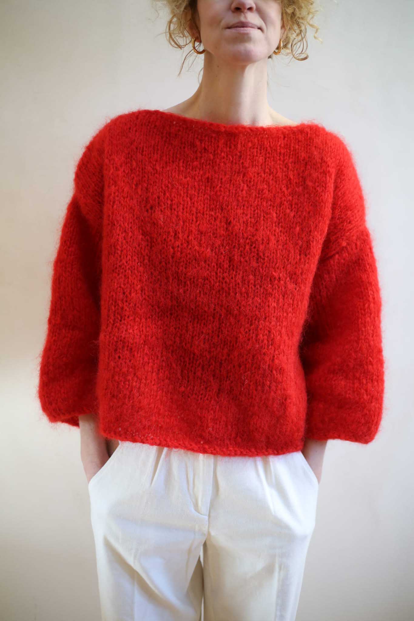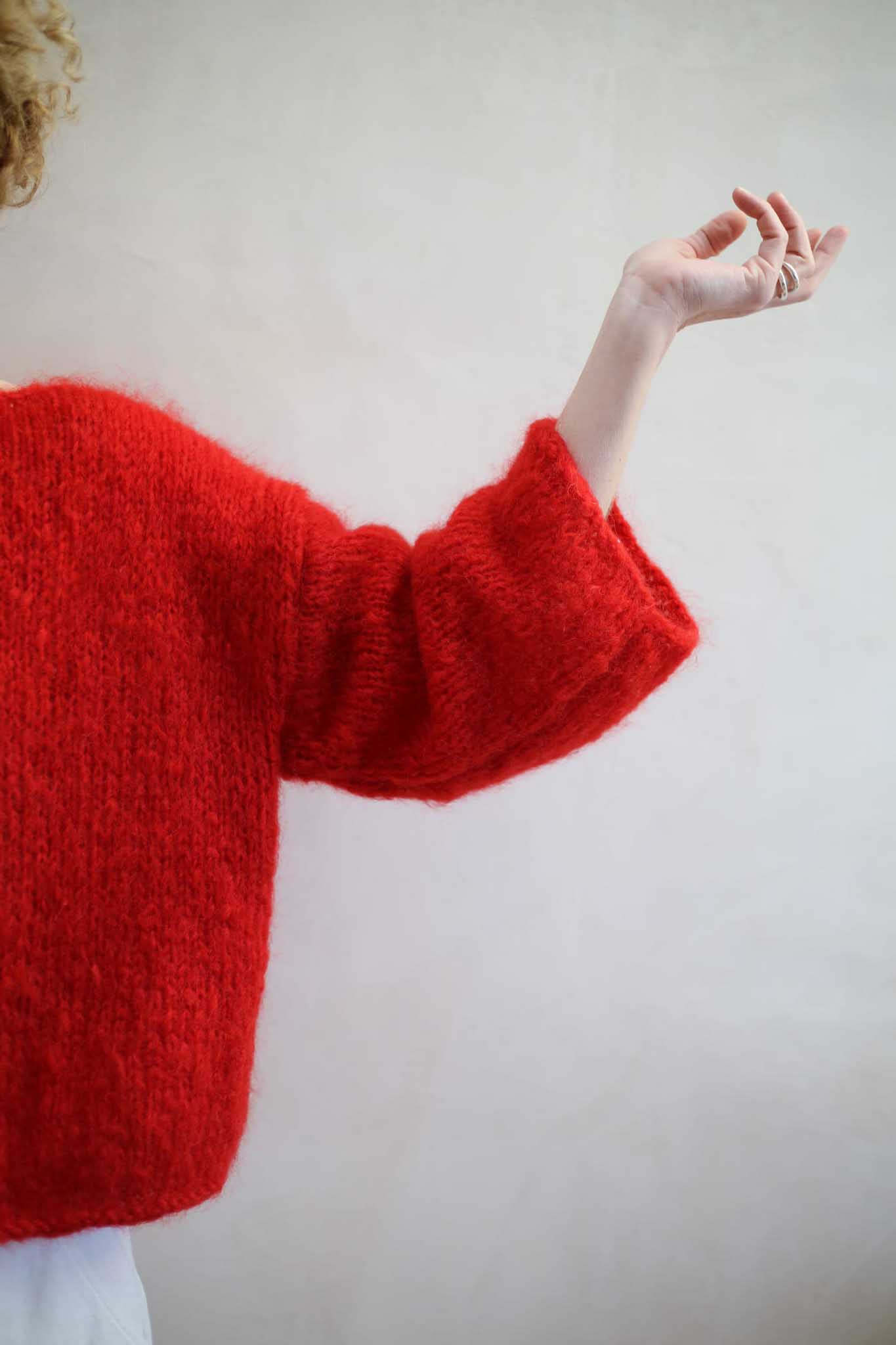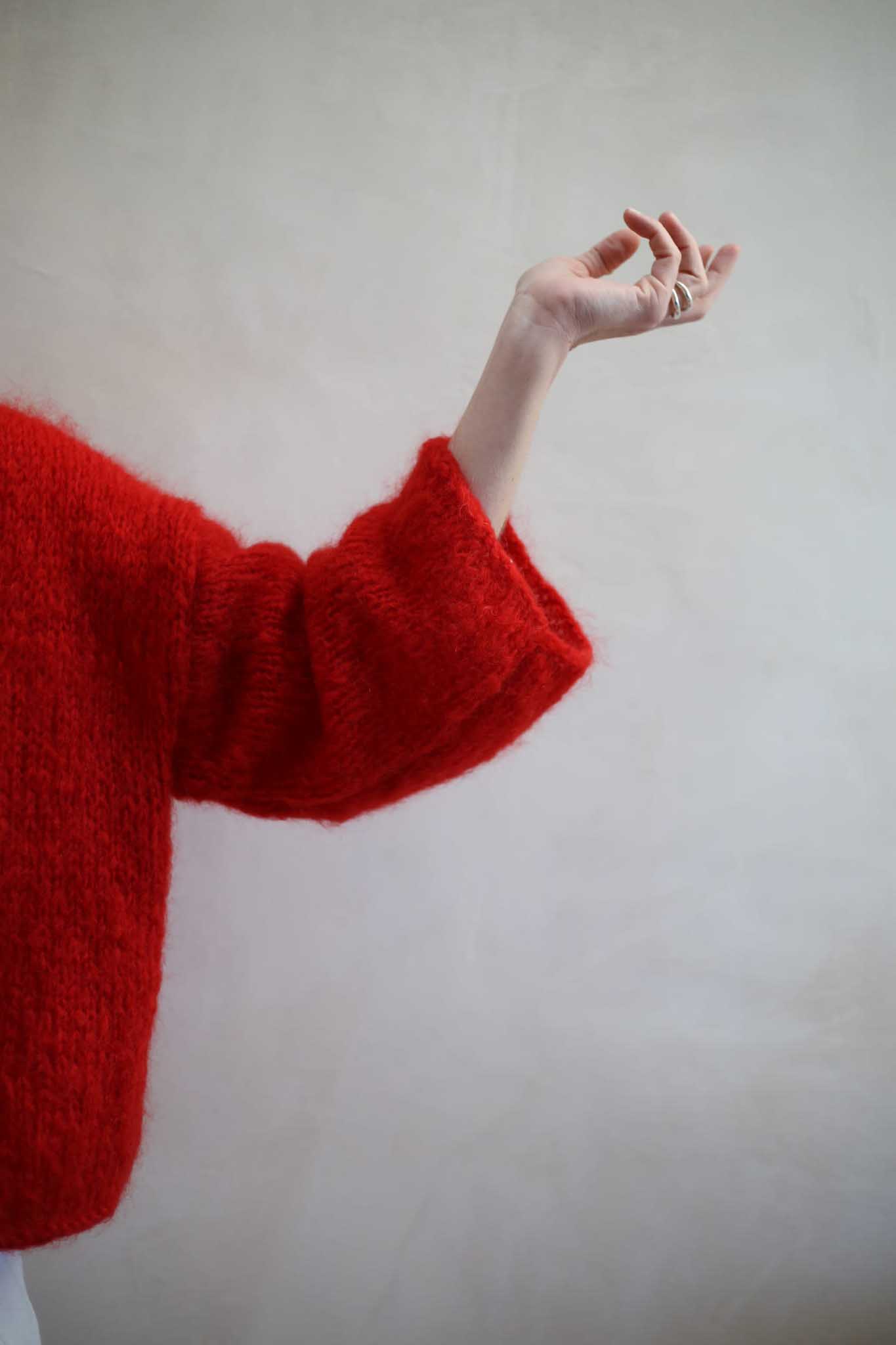Model Teresa to lekki sweter z szerokimi rękawami 7/8, dekoltem w łódkę, opuszczonymi ramionami. Miękki i szlachetny w odbiorze dzięki puszystej wełnie. Wygląda bardzo elegancko i ponadczasowo. Pasuje do zwiewnych spódnic, jak i klasycznych jeansów. Ten model ma prostą, minimalistyczną konstrukcję. Dodaje mu to nowoczesnego sznytu. Tak jak i kolor. Piękna, wyrazista czerwień, która dopełnia wyrazu i charakteru, bez względu na to jak wygląda reszta waszej codziennej garderoby.
