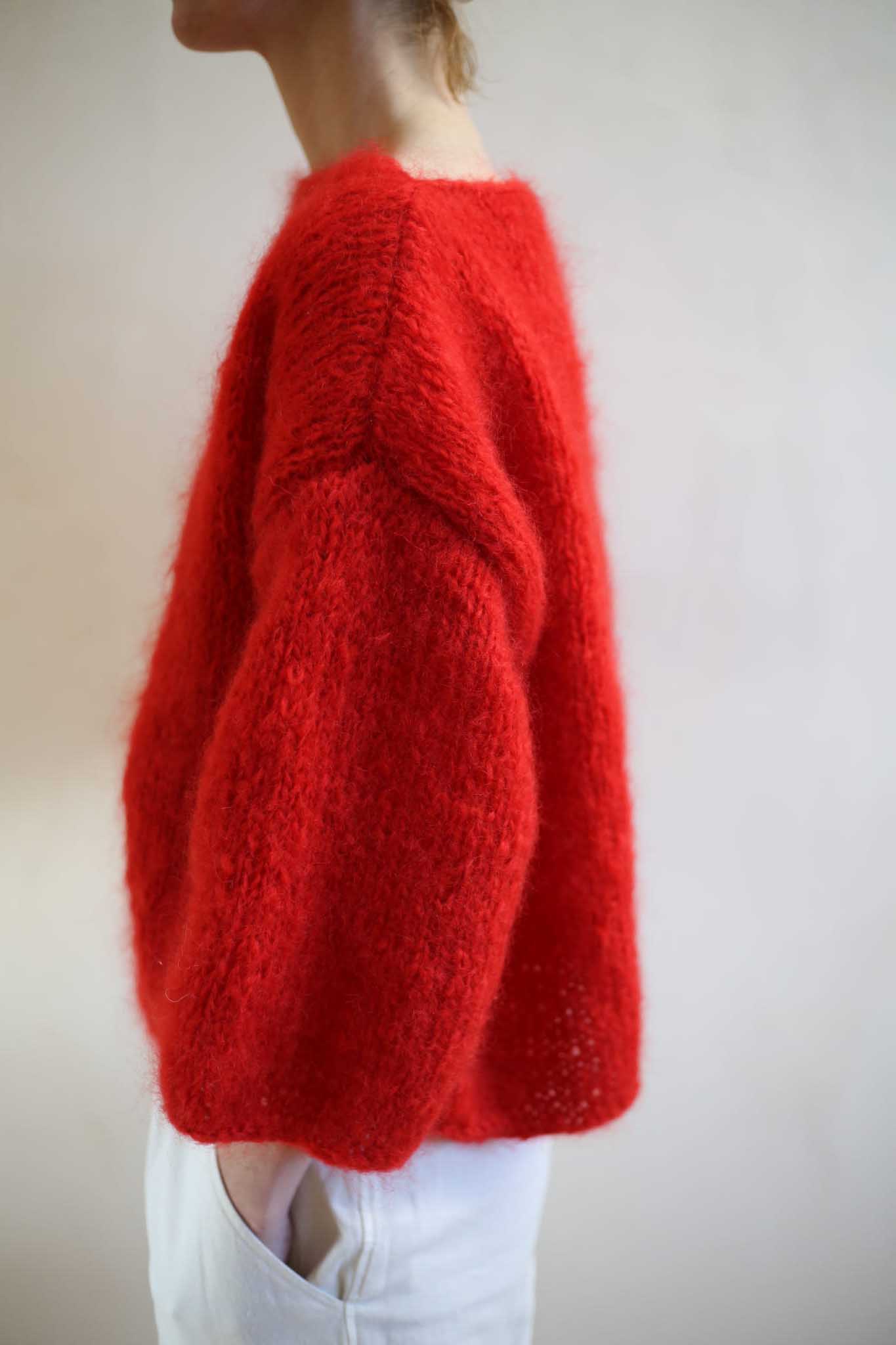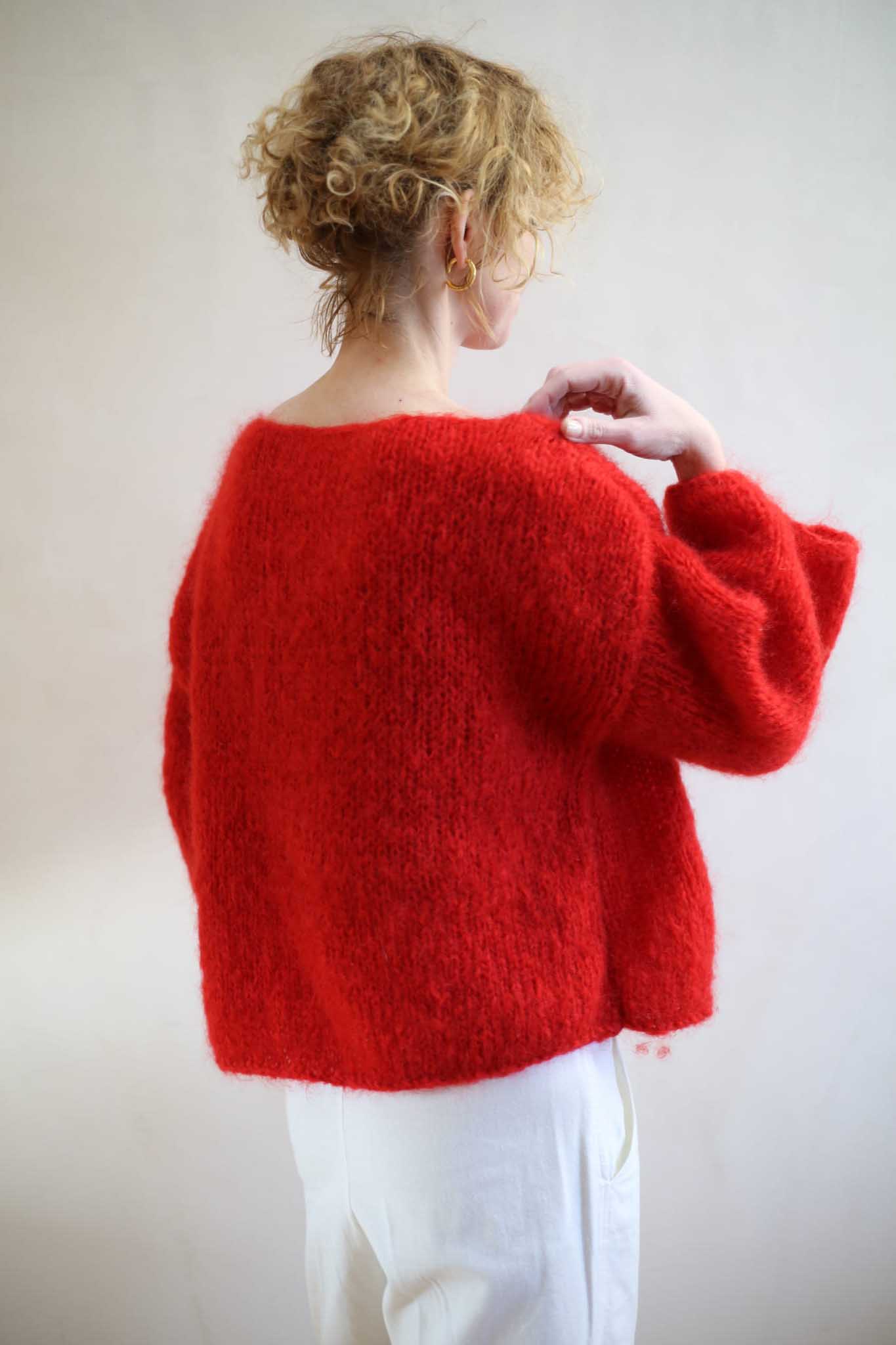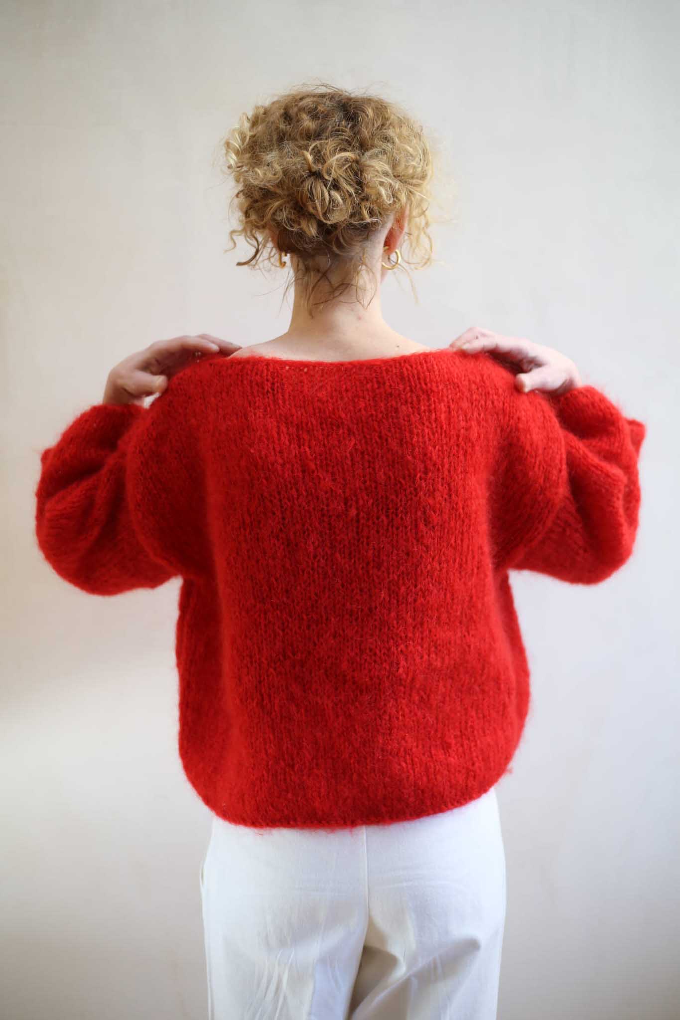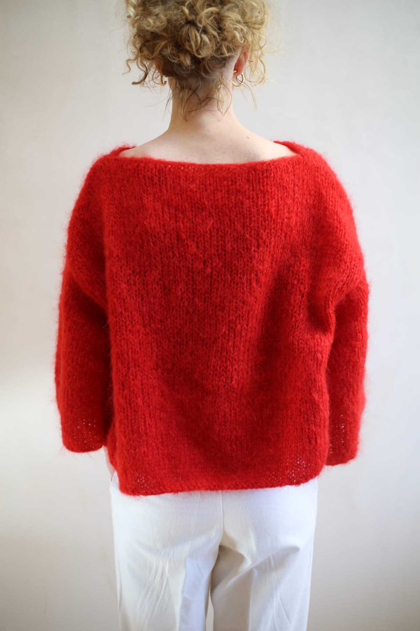 Model Teresa to lekki sweter z szerokimi rękawami 7/8, dekoltem w łódkę, opuszczonymi ramionami. Miękki i szlachetny w odbiorze dzięki puszystej wełnie. Wygląda bardzo elegancko i ponadczasowo. Pasuje do zwiewnych spódnic, jak i klasycznych jeansów. Ten model ma prostą, minimalistyczną konstrukcję. Dodaje mu to nowoczesnego sznytu. Tak jak i kolor. Piękna, wyrazista czerwień, która dopełnia wyrazu i charakteru, bez względu na to jak wygląda reszta waszej codziennej garderoby.