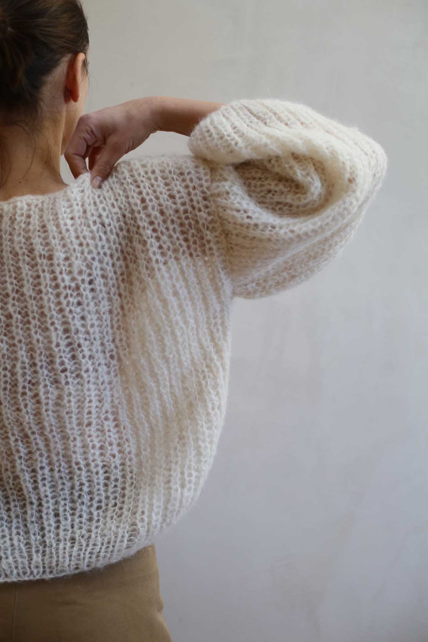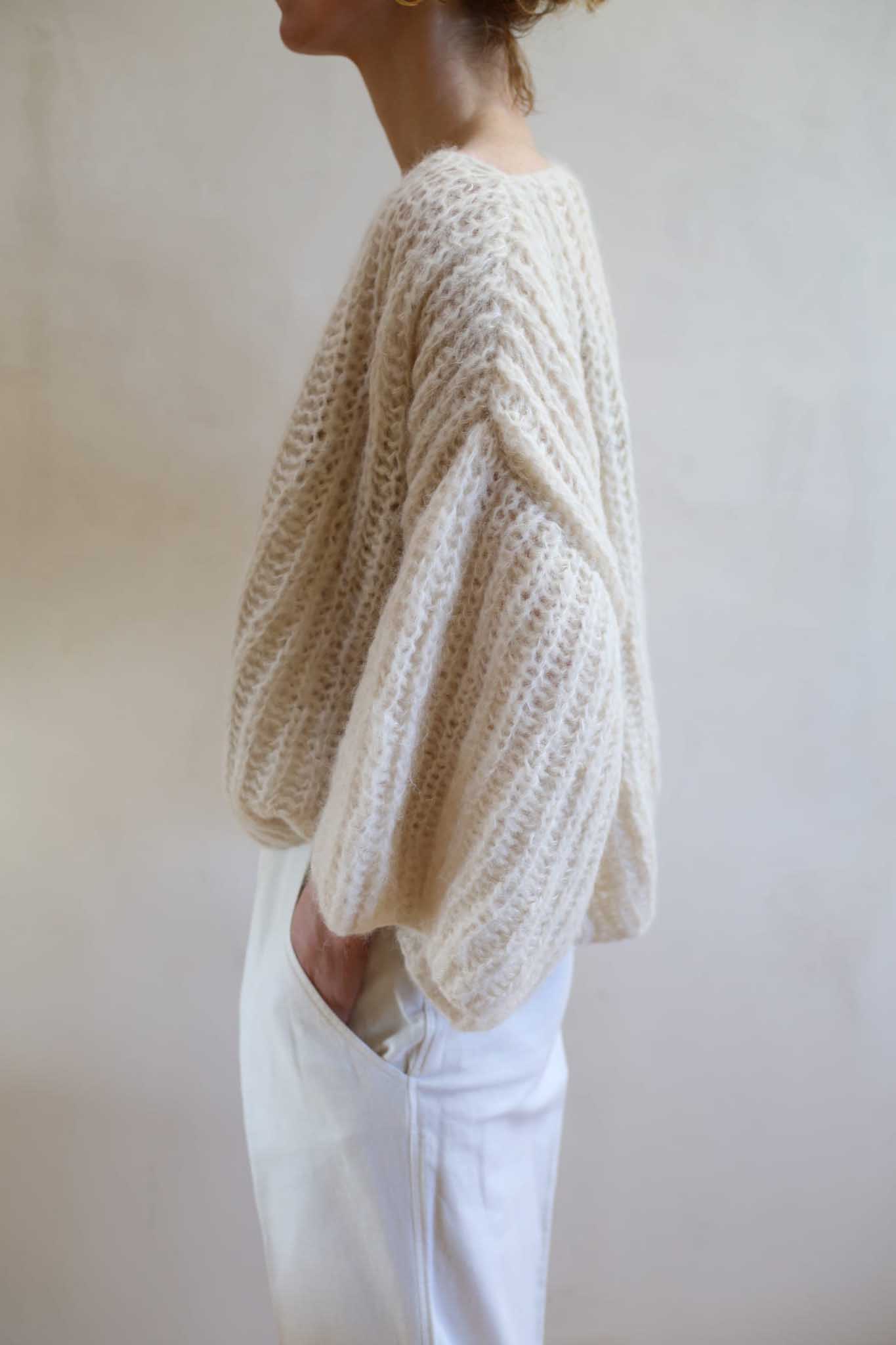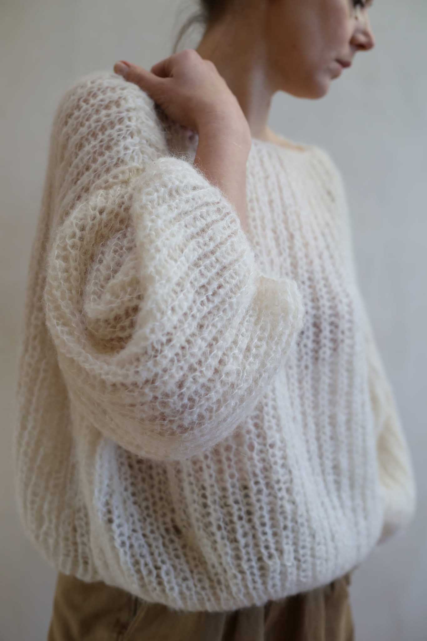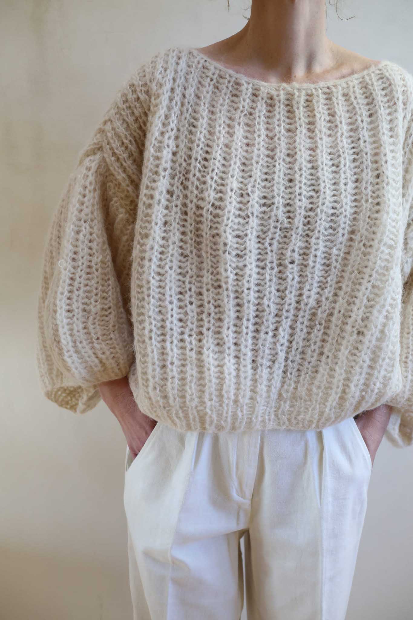 Model Teresa to lekki sweter z szerokimi rękawami 7/8, dekoltem w łódkę, opuszczonymi ramionami i delikatnym ściągaczem w pasie. Miękki i szlachetny w odbiorze dzięki puszystej wełnie. Wygląda bardzo elegancko i ponadczasowo. Pasuje do zwiewnych spódnic, jak i klasycznych jeansów. Ten model ma prostą, minimalistyczną konstrukcję. Dodaje mu to nowoczesnej elegancji.