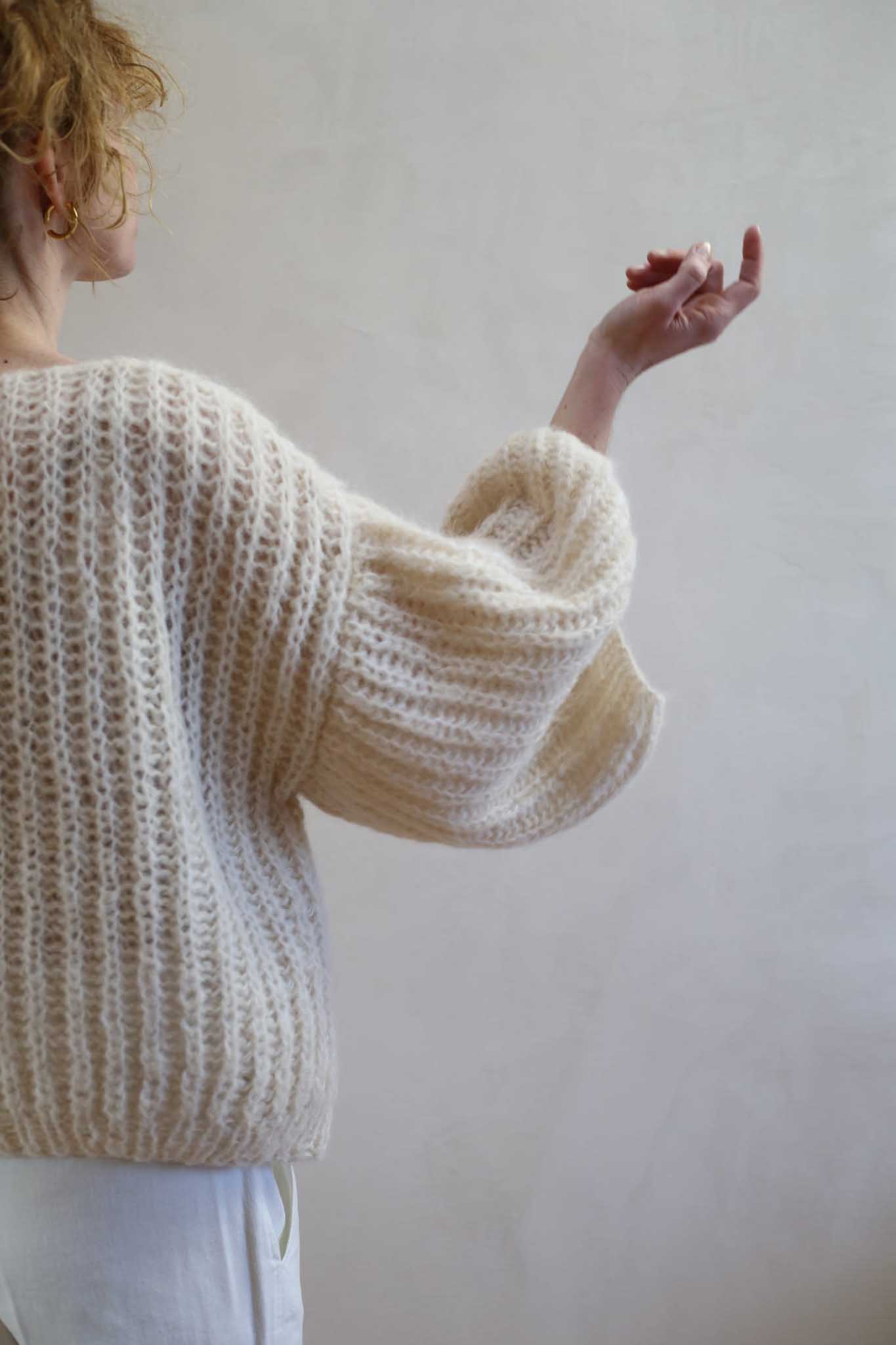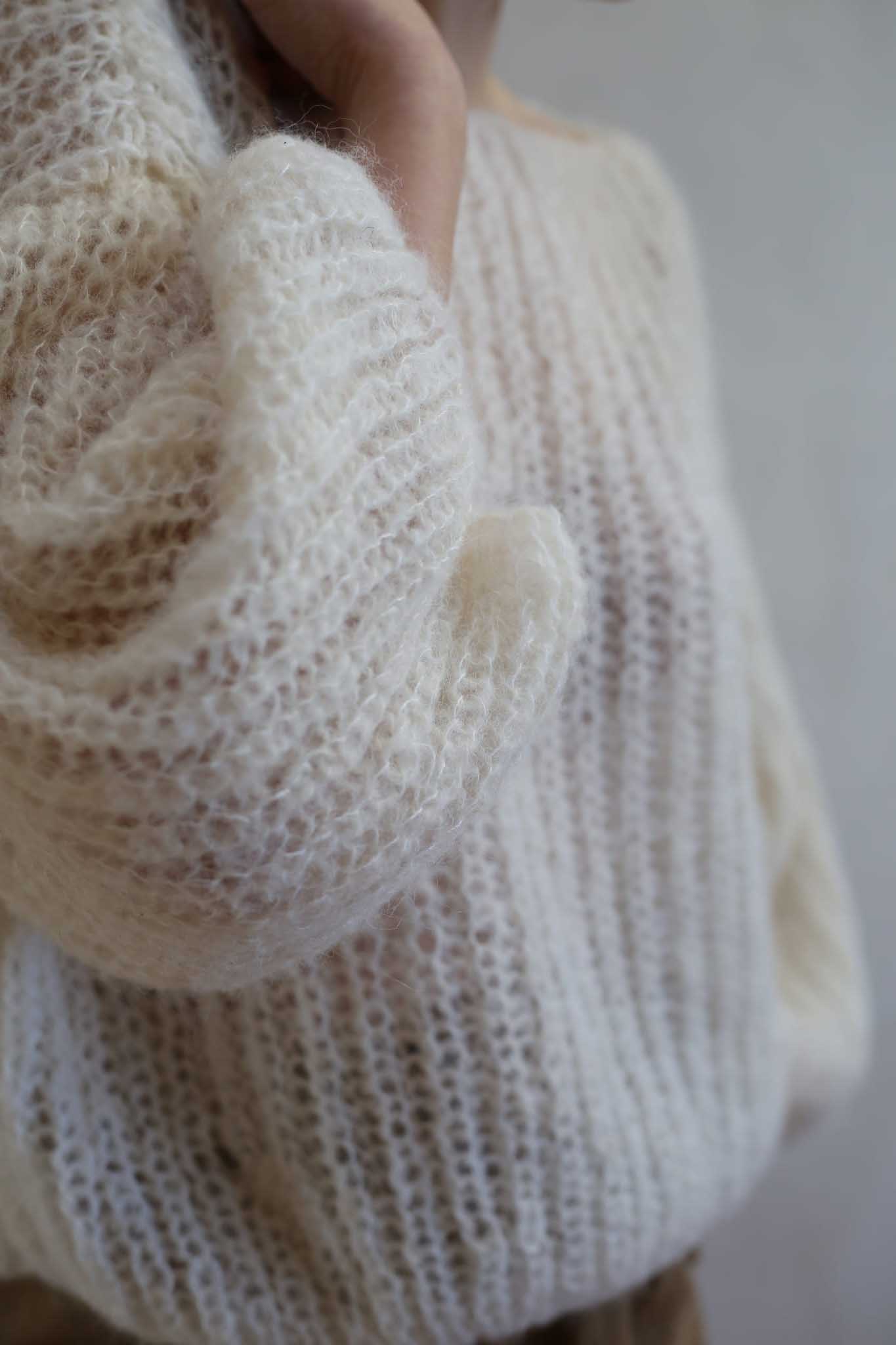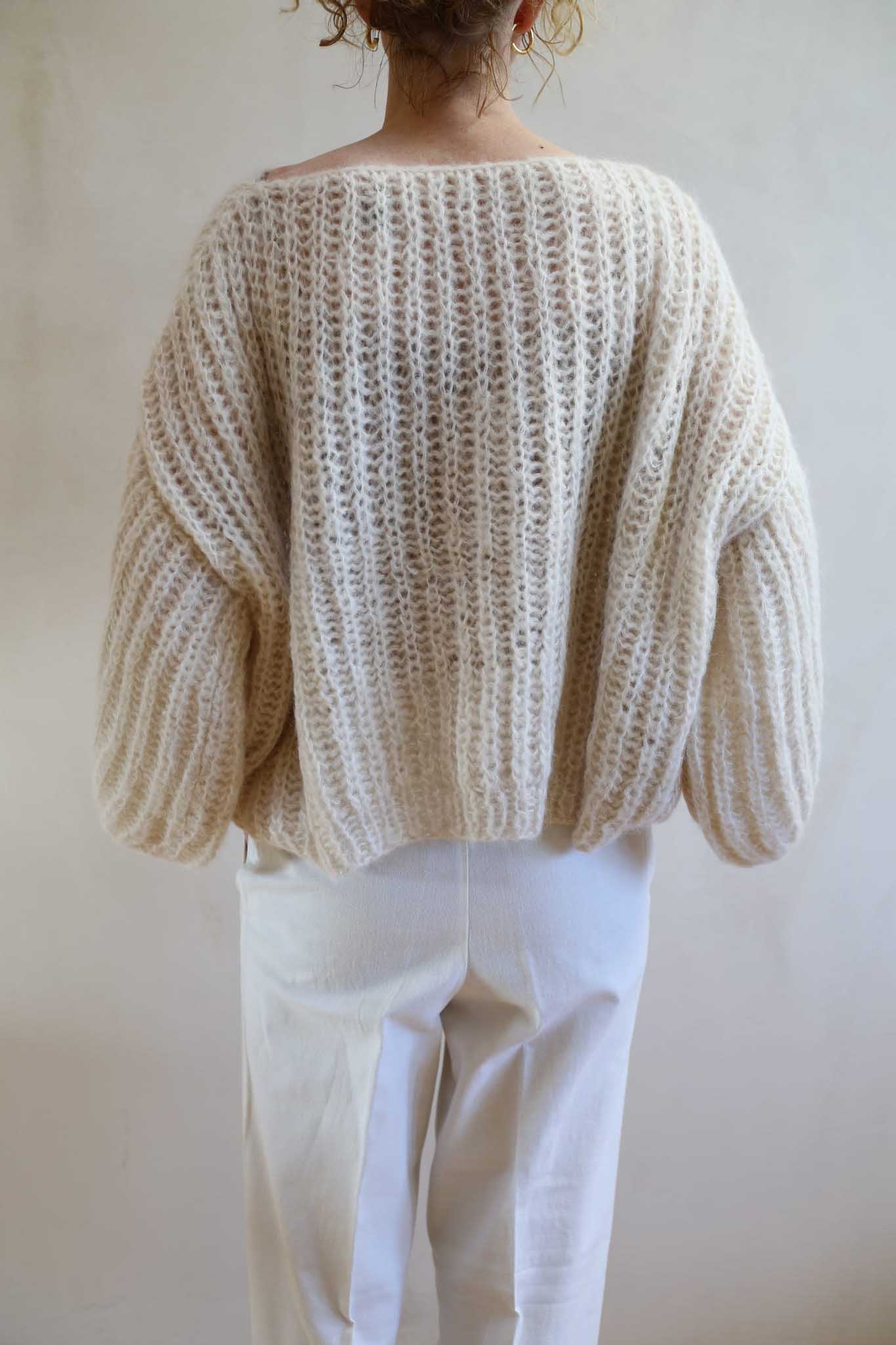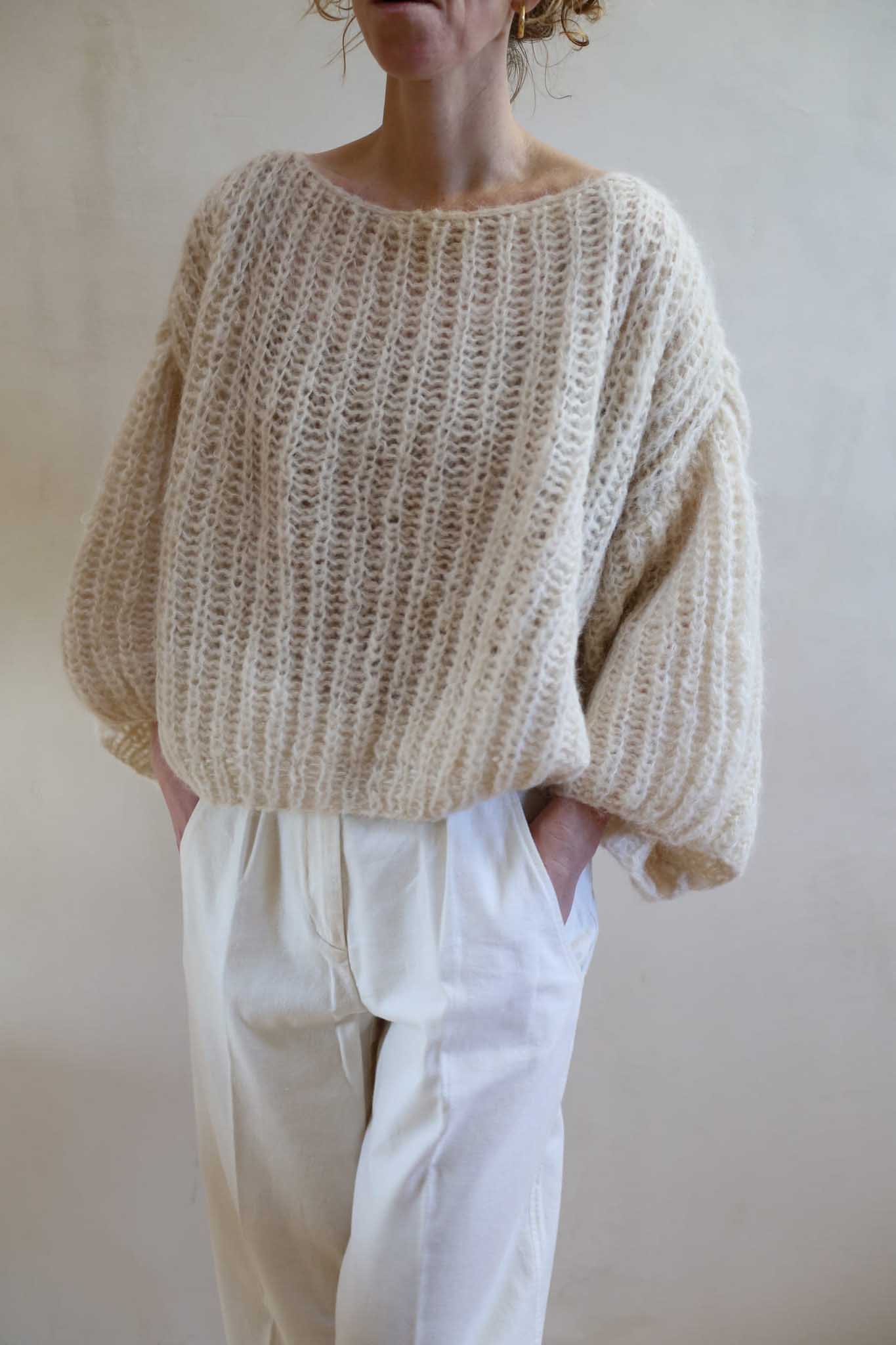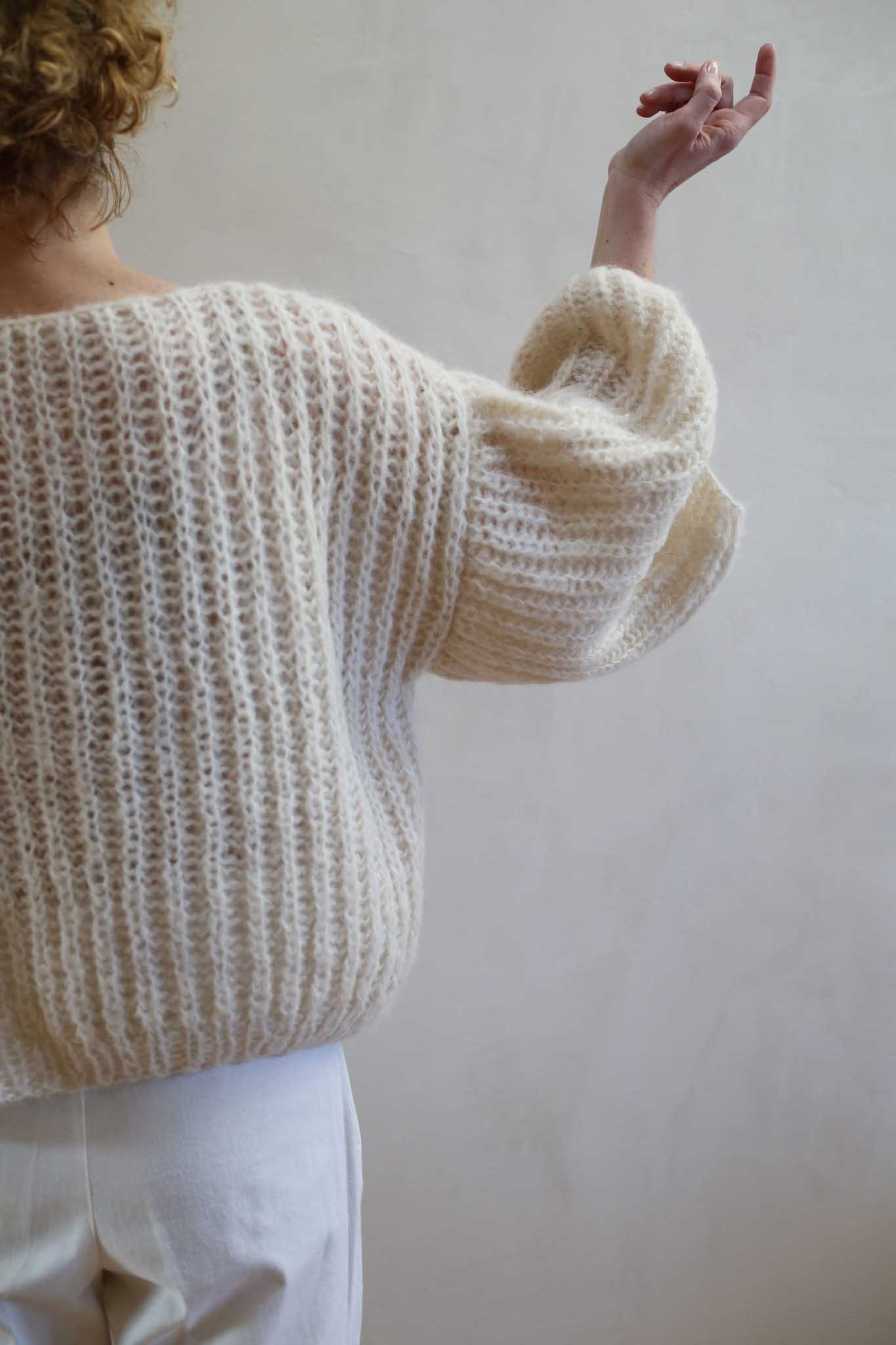 Model Teresa to lekki sweter z szerokimi rękawami 7/8, dekoltem w łódkę, opuszczonymi ramionami i delikatnym ściągaczem w pasie. Miękki i szlachetny w odbiorze dzięki puszystej wełnie. Wygląda bardzo elegancko i ponadczasowo. Pasuje do zwiewnych spódnic, jak i klasycznych jeansów. Ten model ma prostą, minimalistyczną konstrukcję. Dodaje mu to nowoczesnej elegancji.